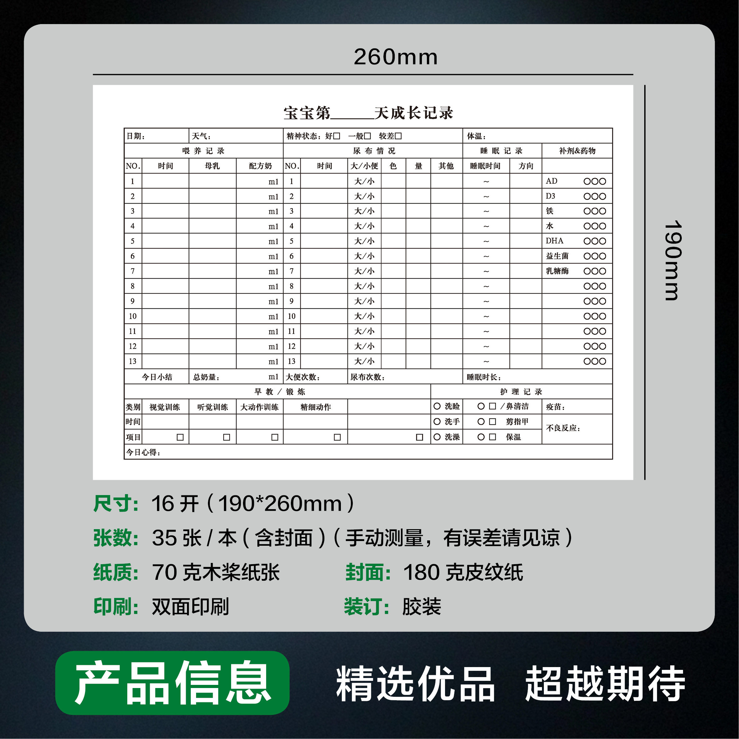 宝宝成长记录表喂养记录本宝宝婴儿新生儿喂奶作息成长日记本手册