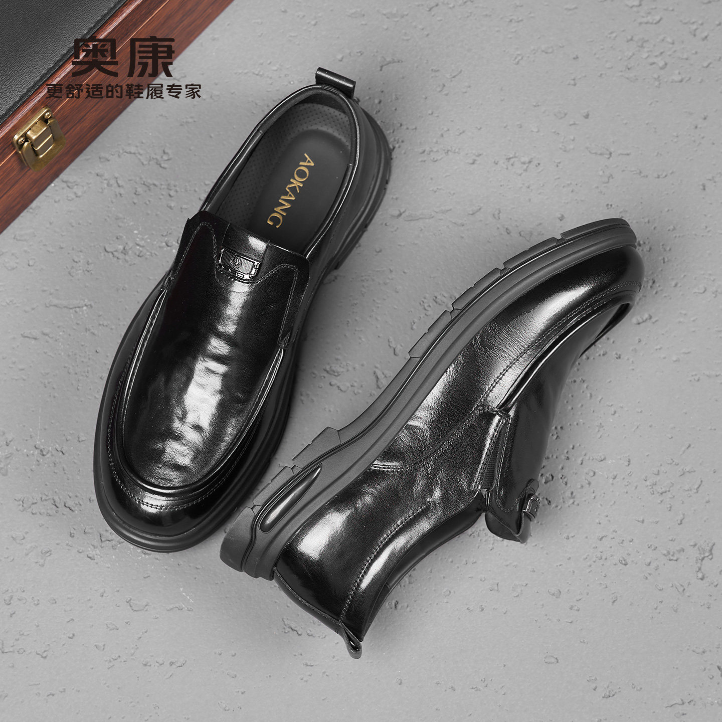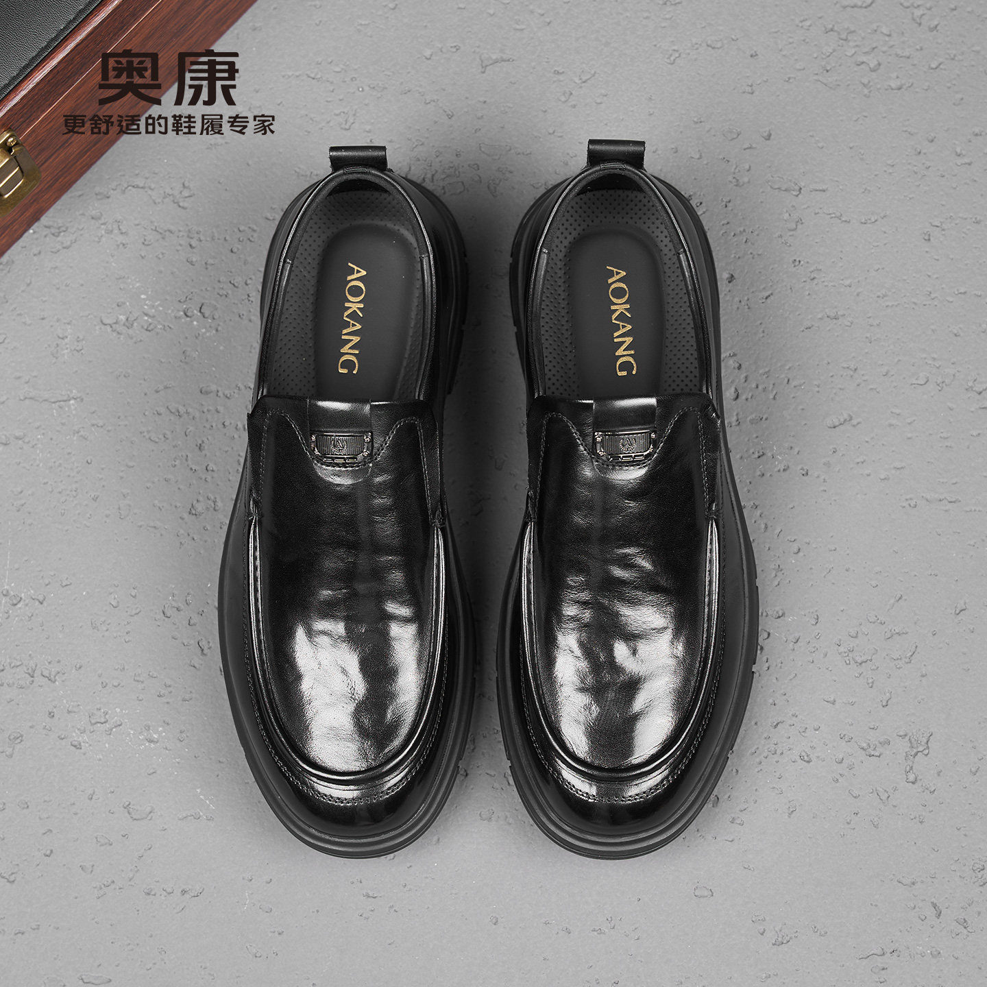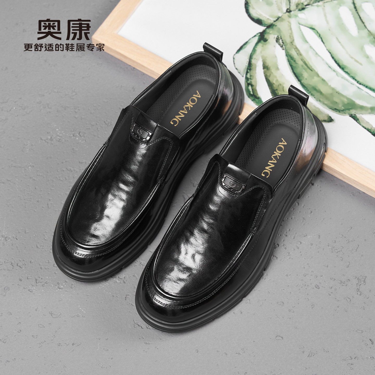 奥康春秋季商务休闲皮鞋男真皮软底乐福鞋舒适一脚蹬套脚爸爸鞋