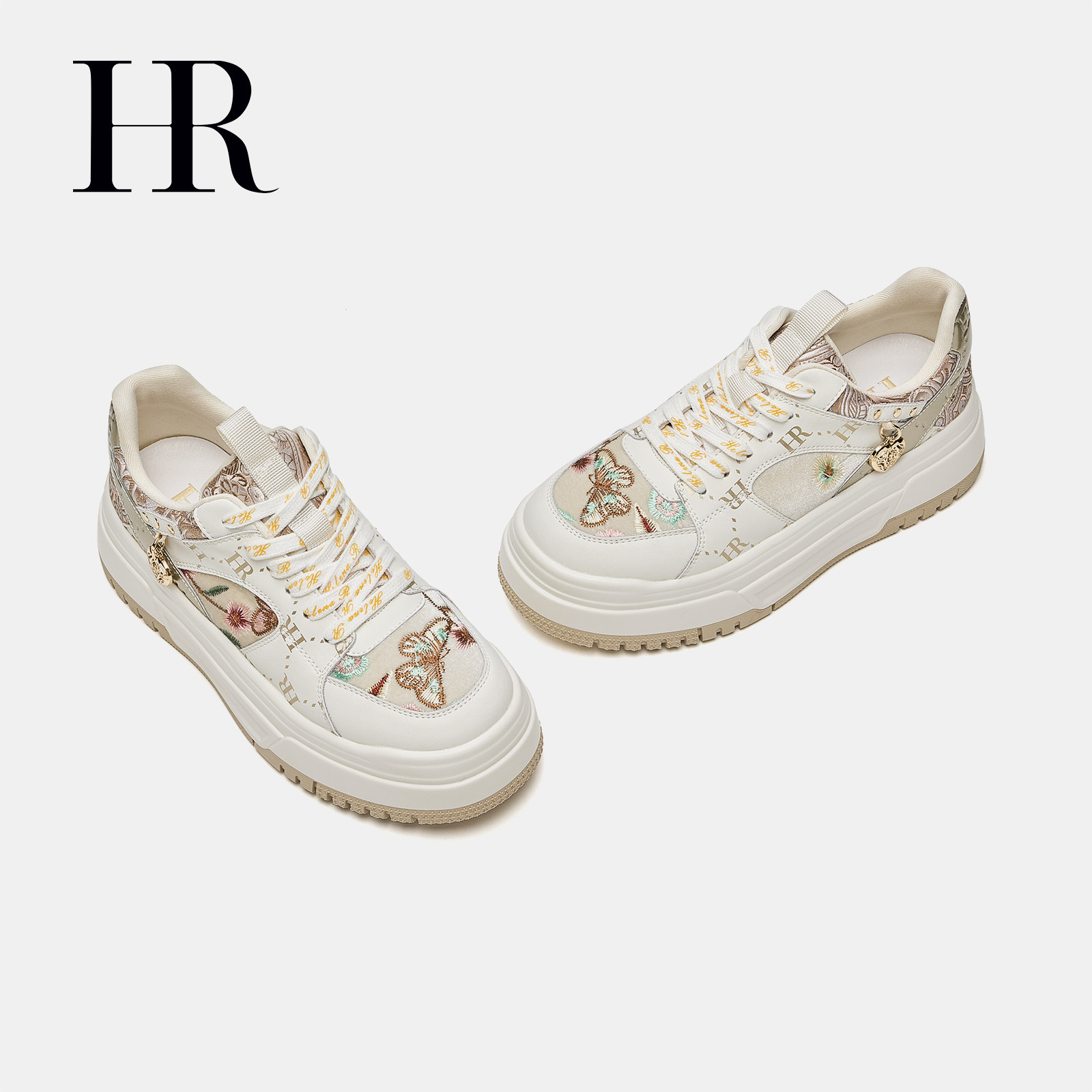 HR赫莲娜板鞋2025年夏季新款休闲女鞋子厚底国风刺绣小众运动鞋