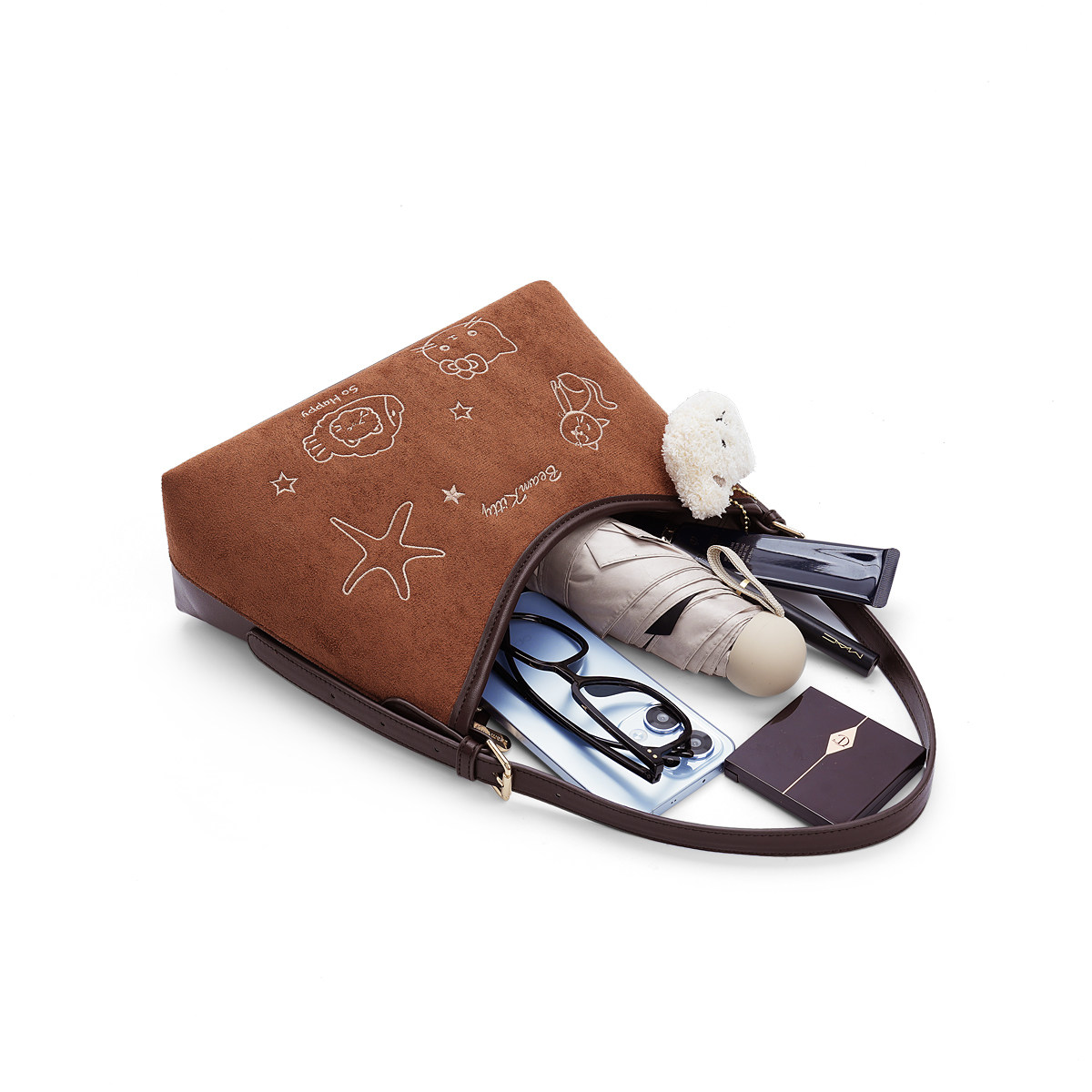 包包女包2025新款刺绣托特包女大容量上班通勤单肩包棕色斜挎推特