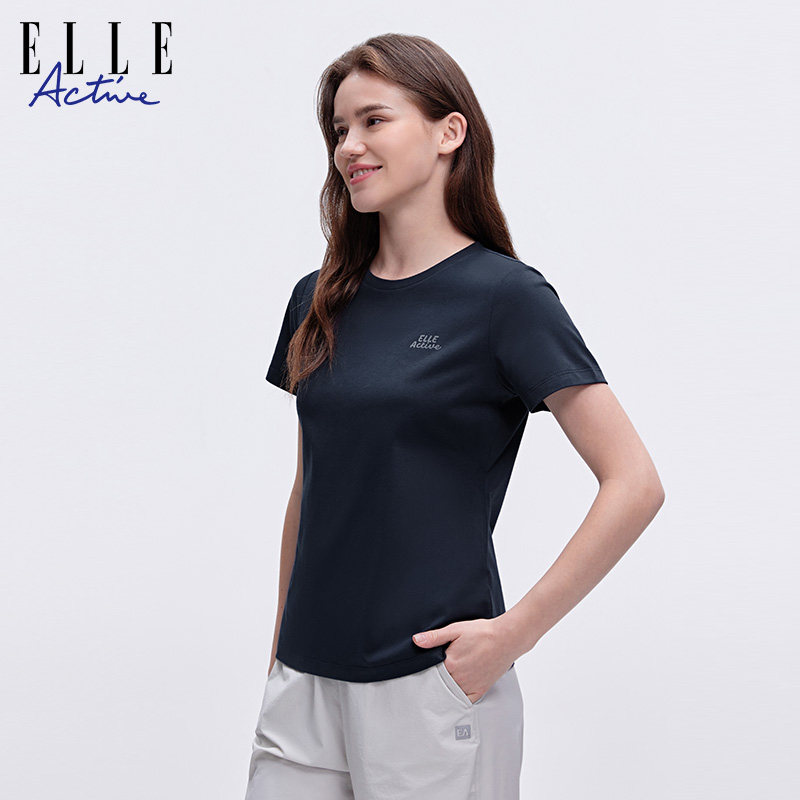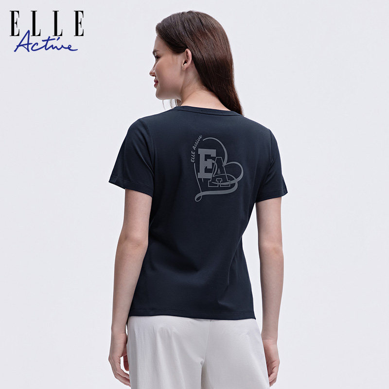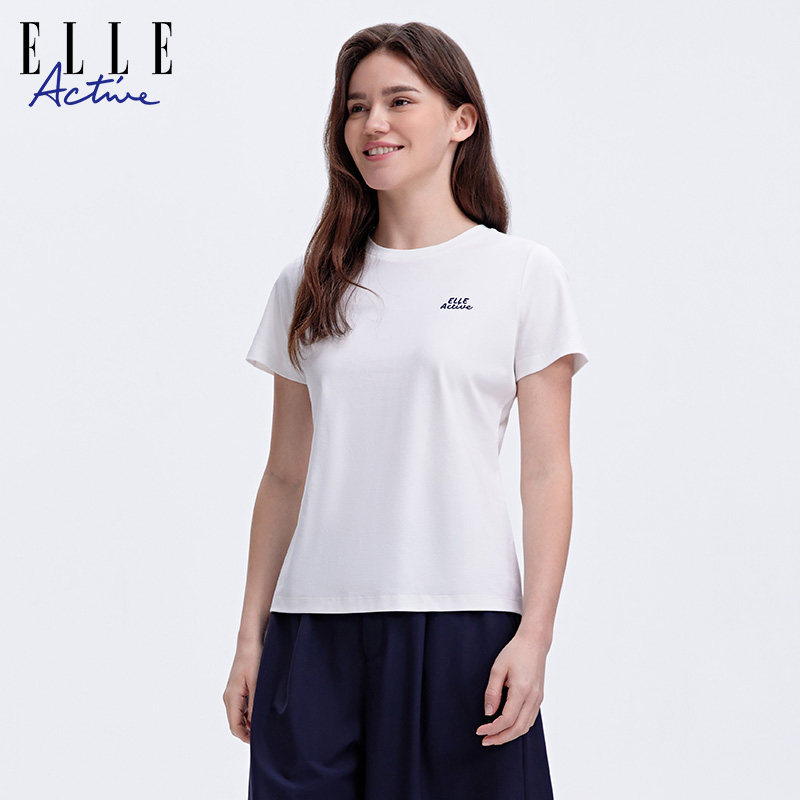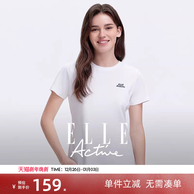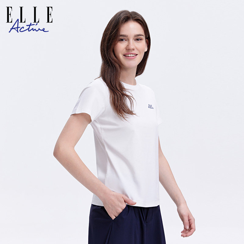 ELLE Active索罗娜凉感t恤女2025夏新款白色上衣设计感印花短袖衫