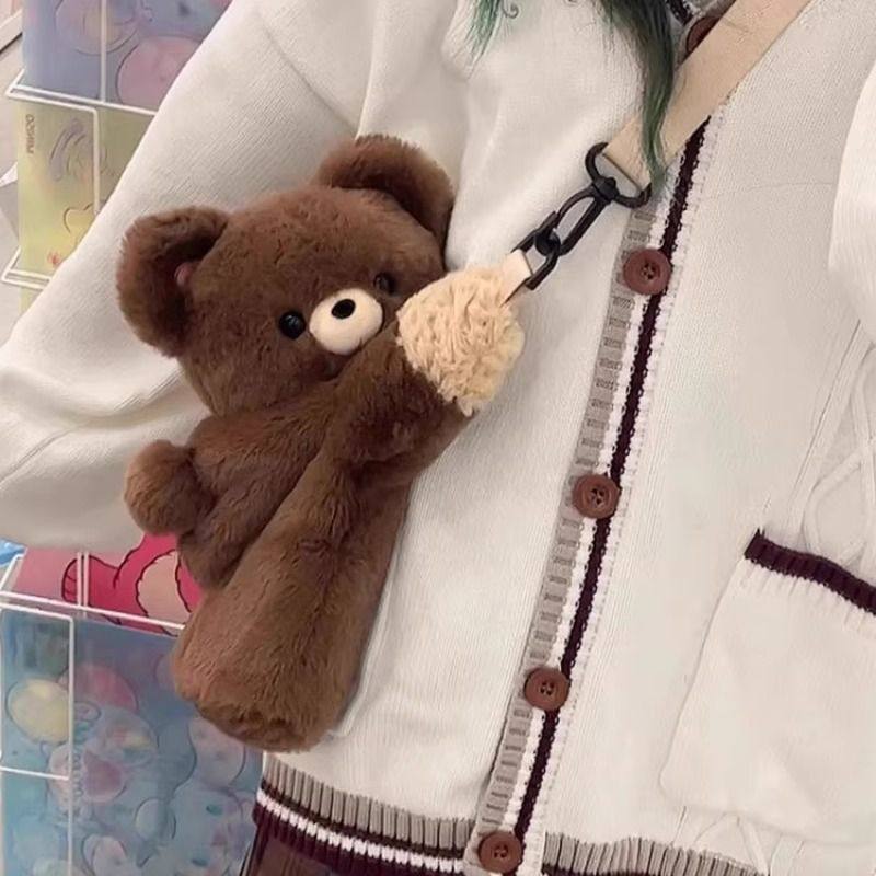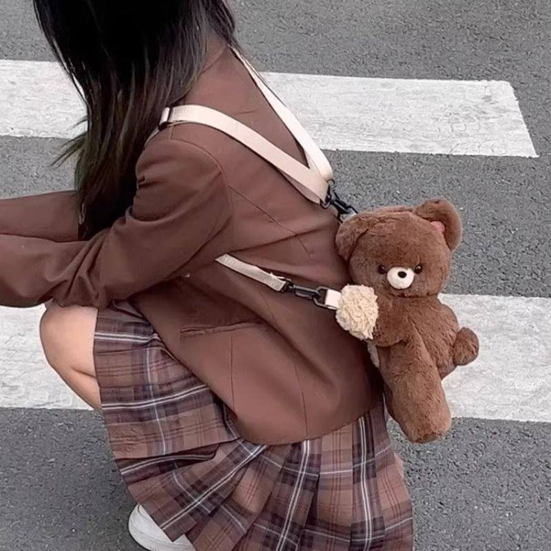 日系二次元卡通趴趴小熊公仔毛绒斜跨包洋气少女jk背包可爱潮流女