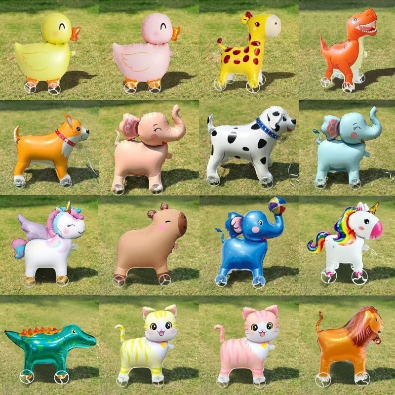Q版走路带轮子动物立体气球狗卡通儿童生日装饰场景布置户外摆摊