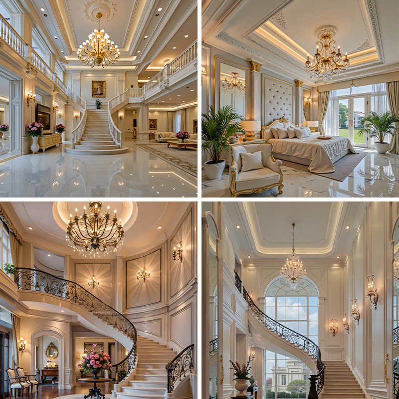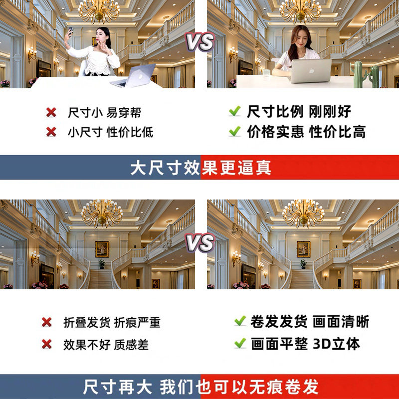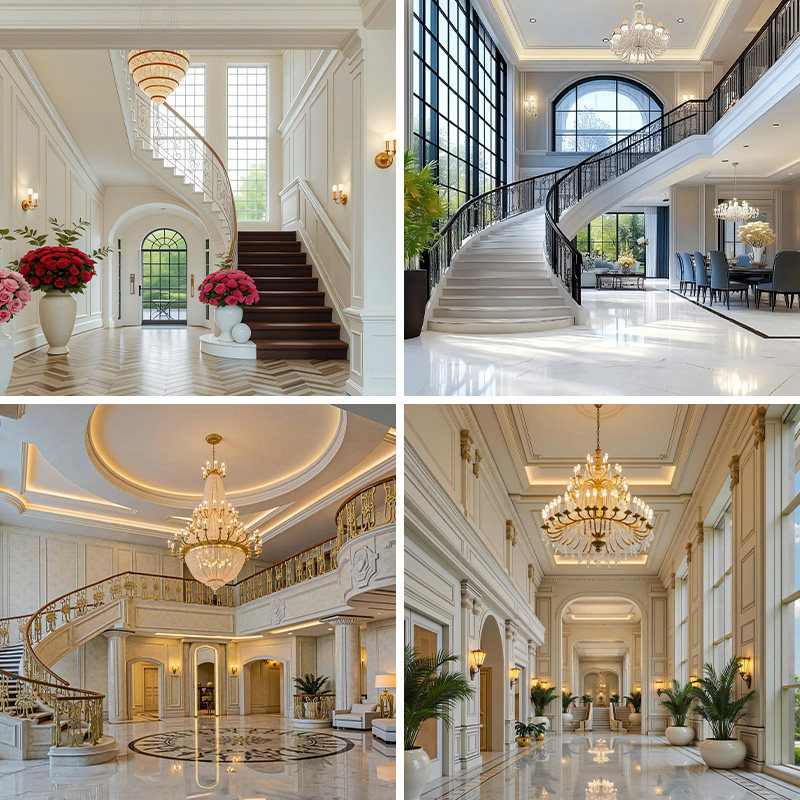 法式轻奢别墅楼梯复古艺术感壁纸画直播间直播背景布3d立体背景墙旋转场景布置高级感网红拍照现代别墅大宅