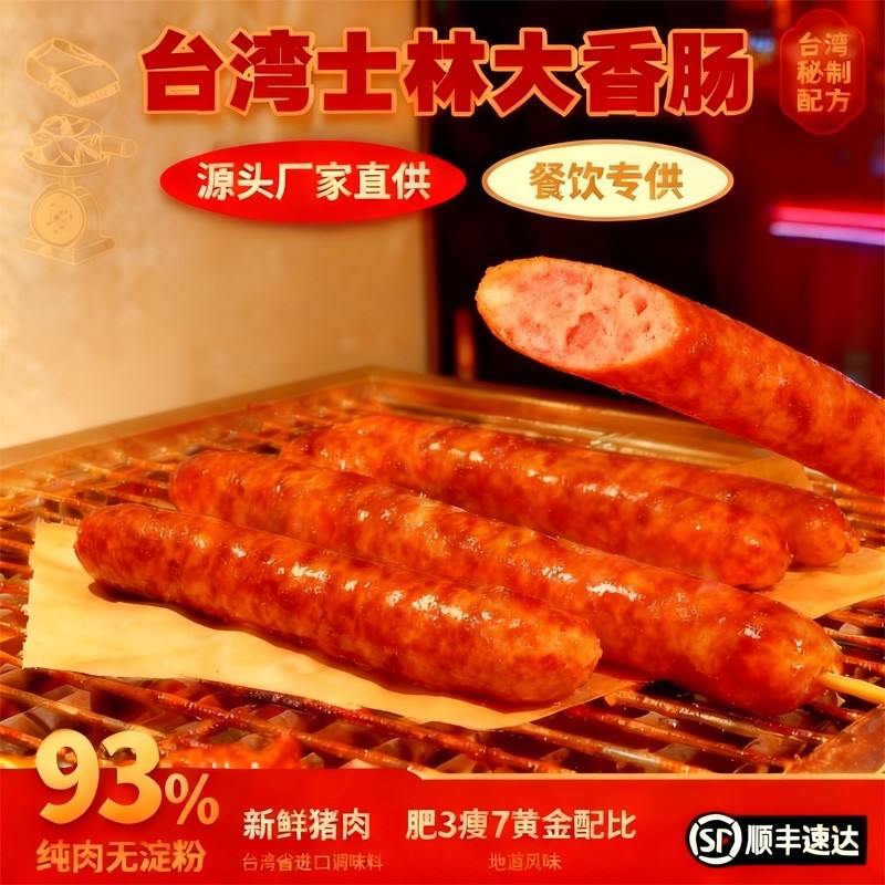 儿童鲜肉台湾士林大香肠正宗台式纯肉烤肠火山石酒吧烤肉夜市商用