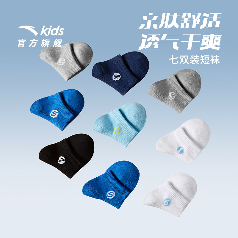安踏儿童袜子秋冬七双装男童跑步运动袜子女童袜子男孩舒适短袜子