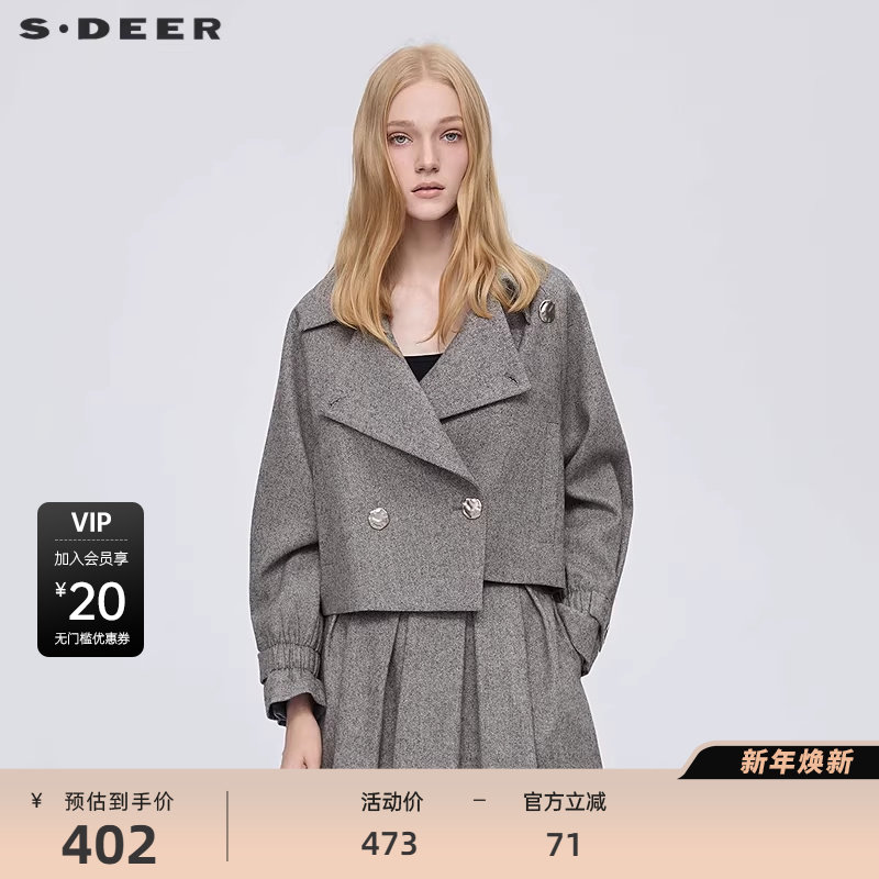 sdeer圣迪奥女装25年新品OL风翻领不规则毛呢短款外套S253Z2221