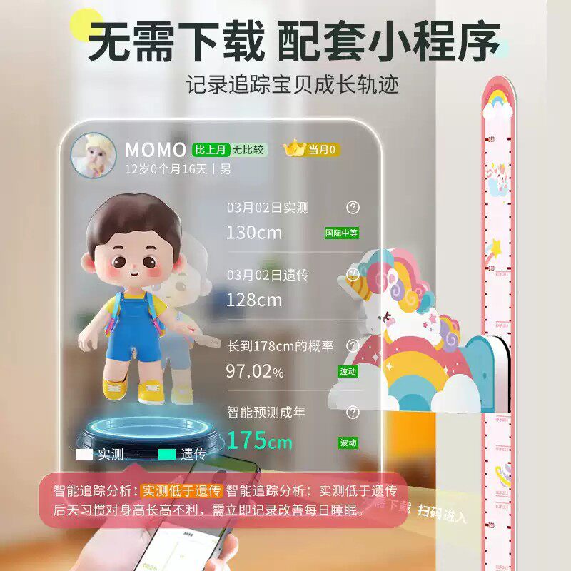 儿童量身高贴纸家用透明身高测量墙贴2米一整张防水可移除不伤墙