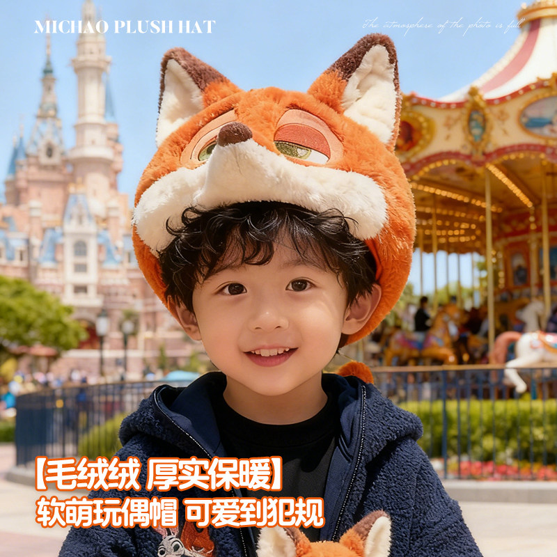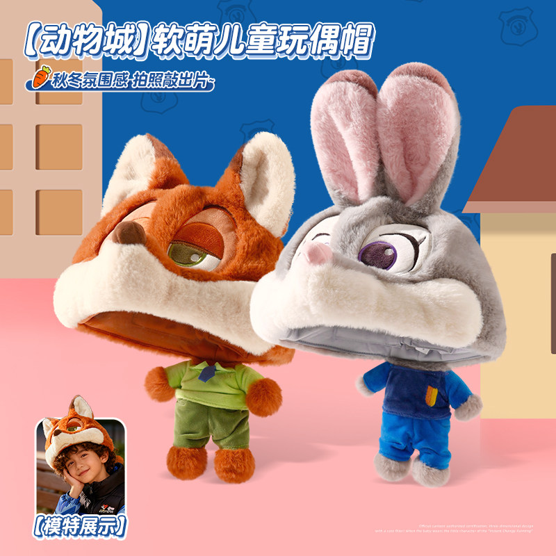 兔子警官朱迪儿童帽子女童冬季保暖毛绒玩偶帽可爱尼克套头帽男孩