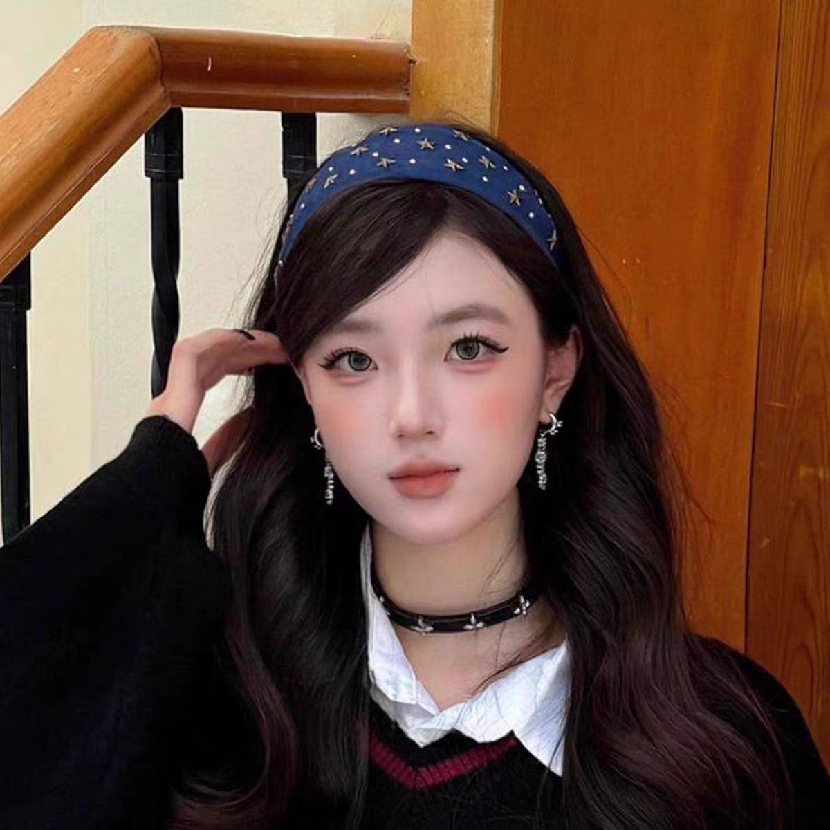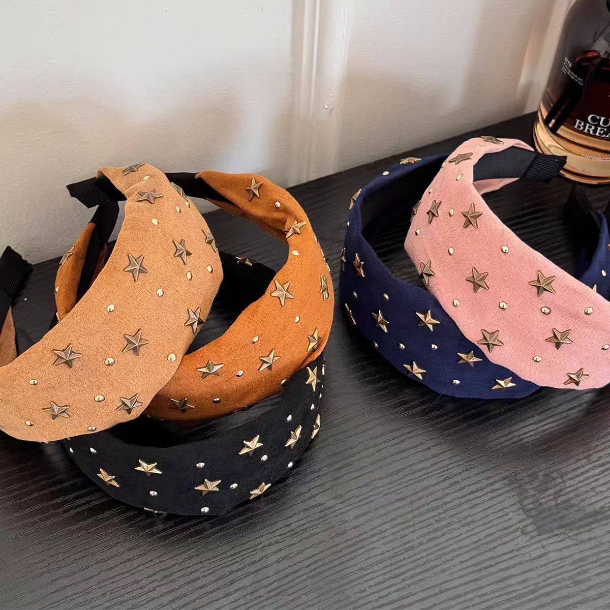 复古五角星铆钉宽边发箍女2025新款高级感小众设计头箍高颅顶发饰