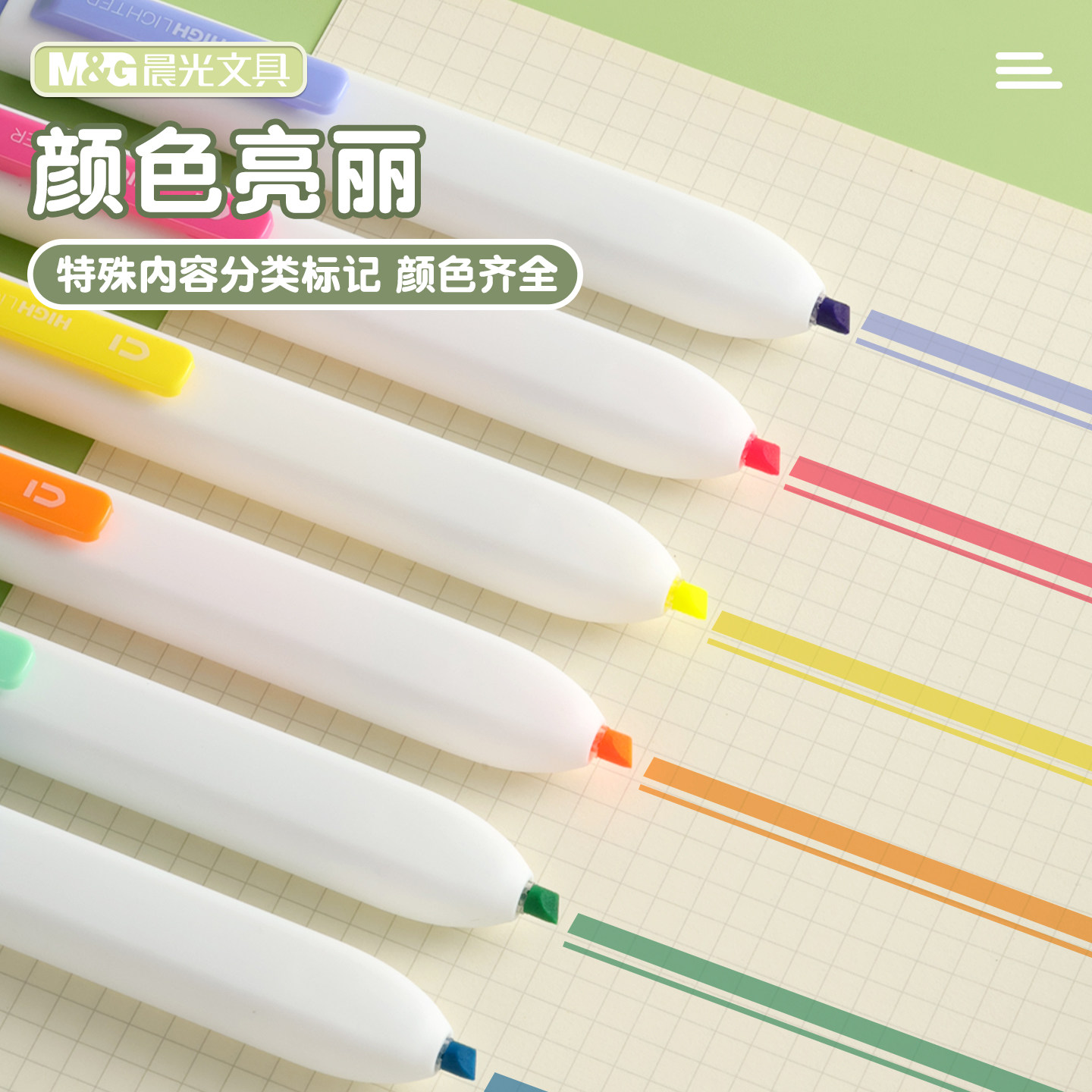 晨光按动荧光笔学生用高颜值记笔多色可选记号笔手账笔记彩色小方芯学生专用划重点记号笔手抄报彩色涂色笔