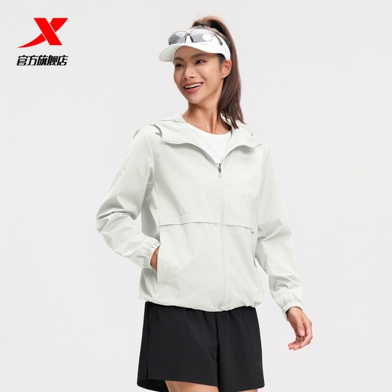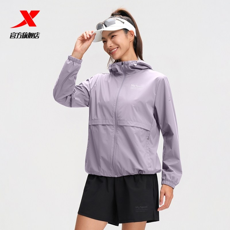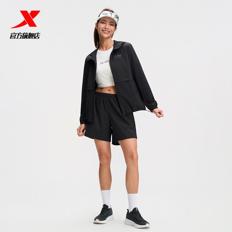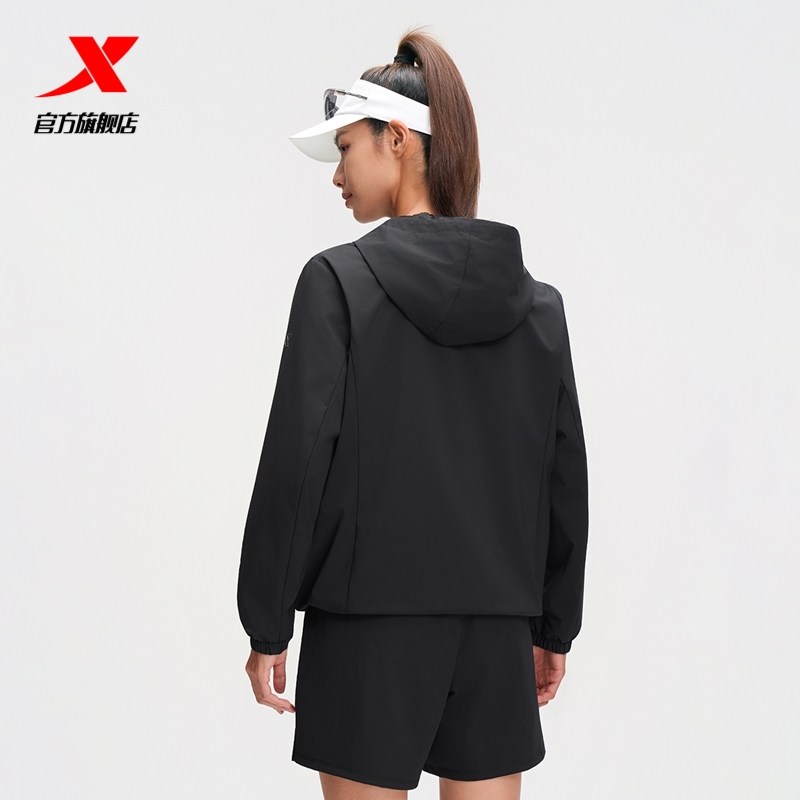 特步跑步外套女2025年秋冬新款休闲运动上衣健身连帽薄款夹克风衣