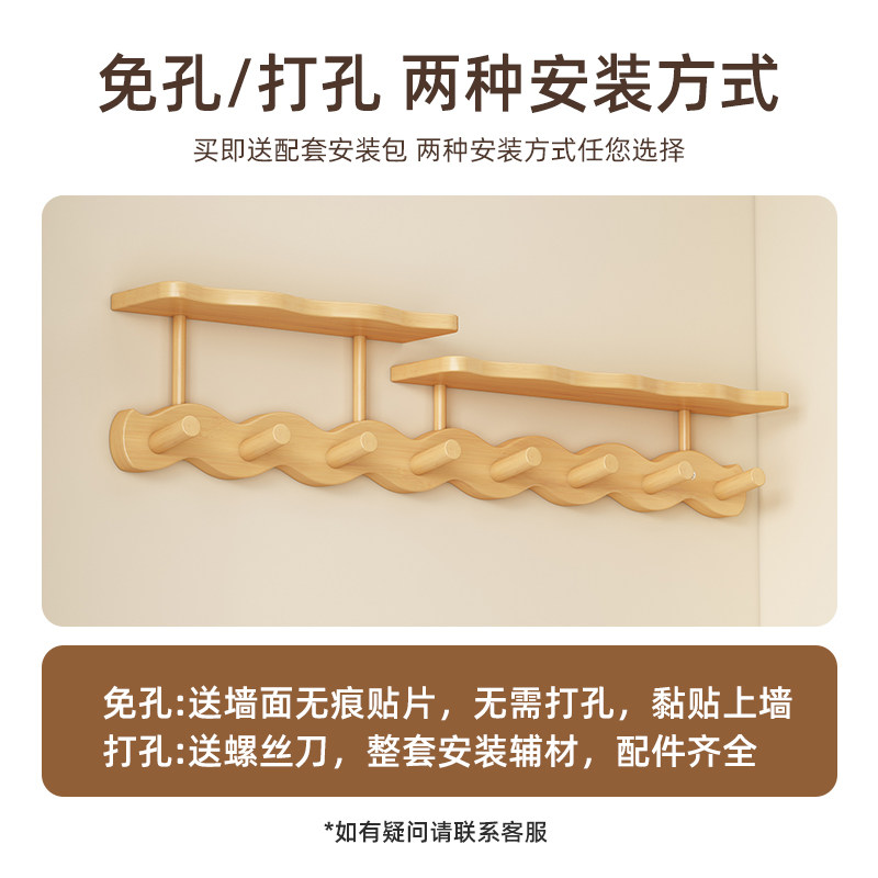楠竹墙上挂衣架壁挂式置物架简约入户玄关门后收纳置物衣帽架