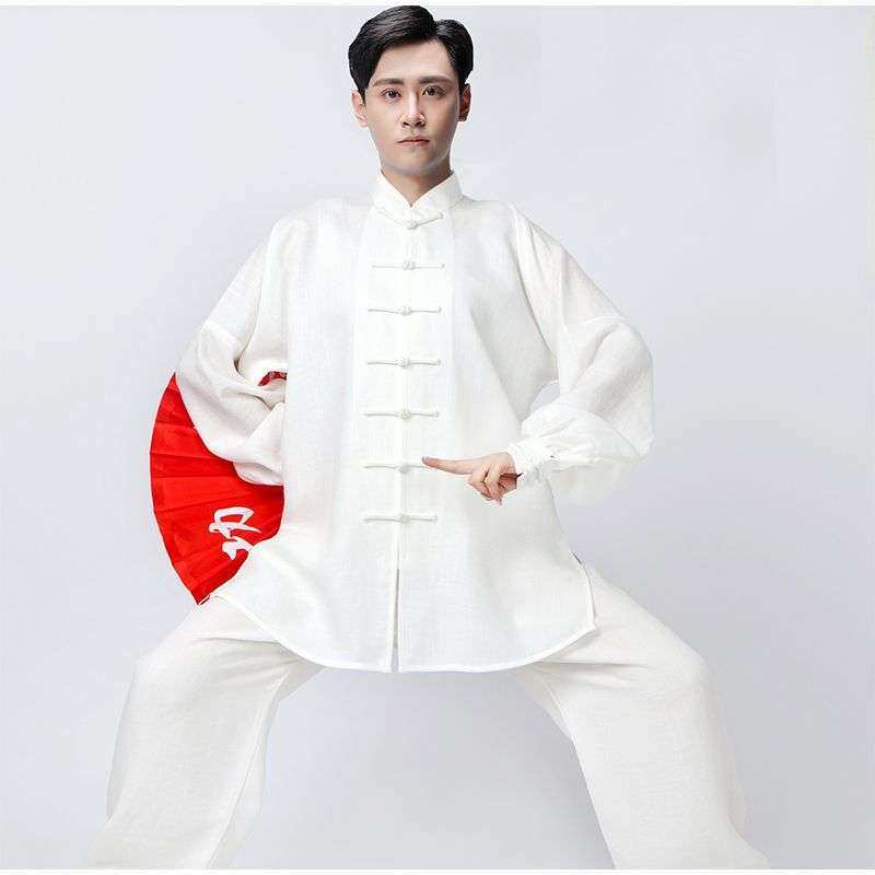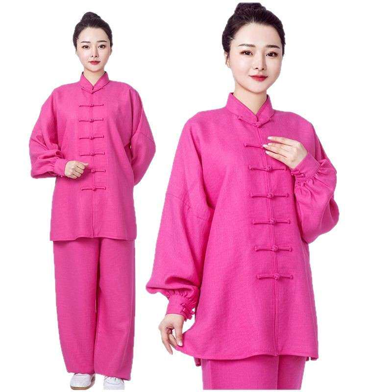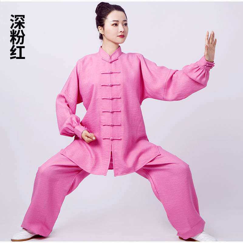 棉麻太极服女春秋加厚太极练功服男中老年高档武术服装太极拳套装