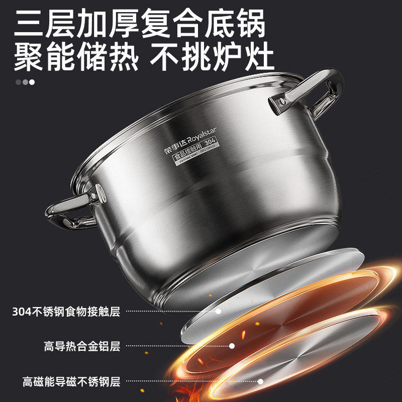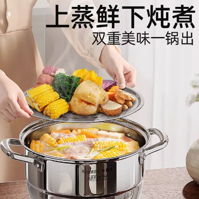 荣事达蒸锅家用304不锈钢多层通用蒸煮汤锅多规格可选