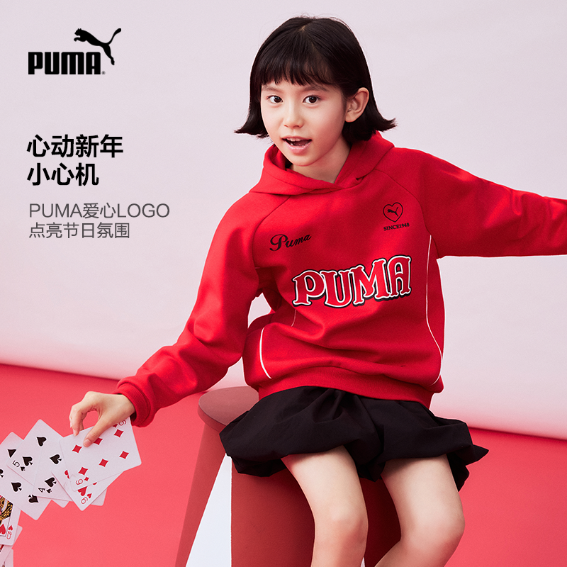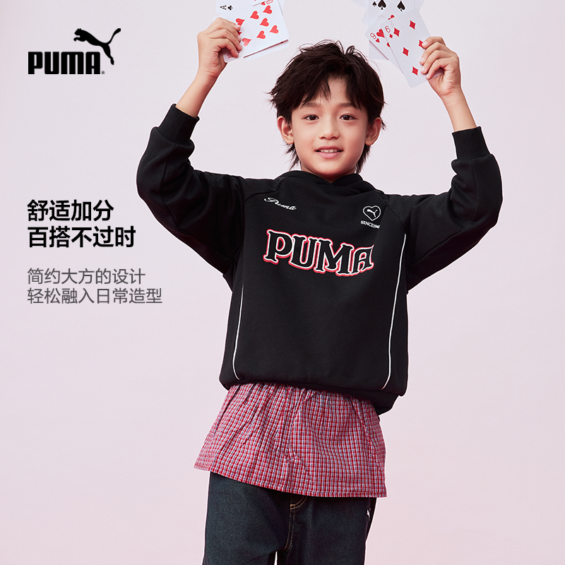PUMA彪马官方新款儿童童装长袖卫衣连帽设计宽松赛车风加绒运动衫
