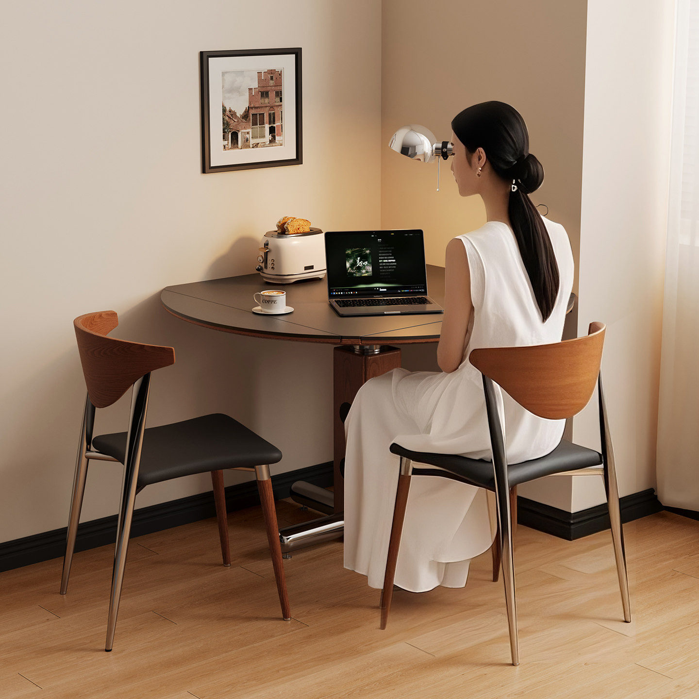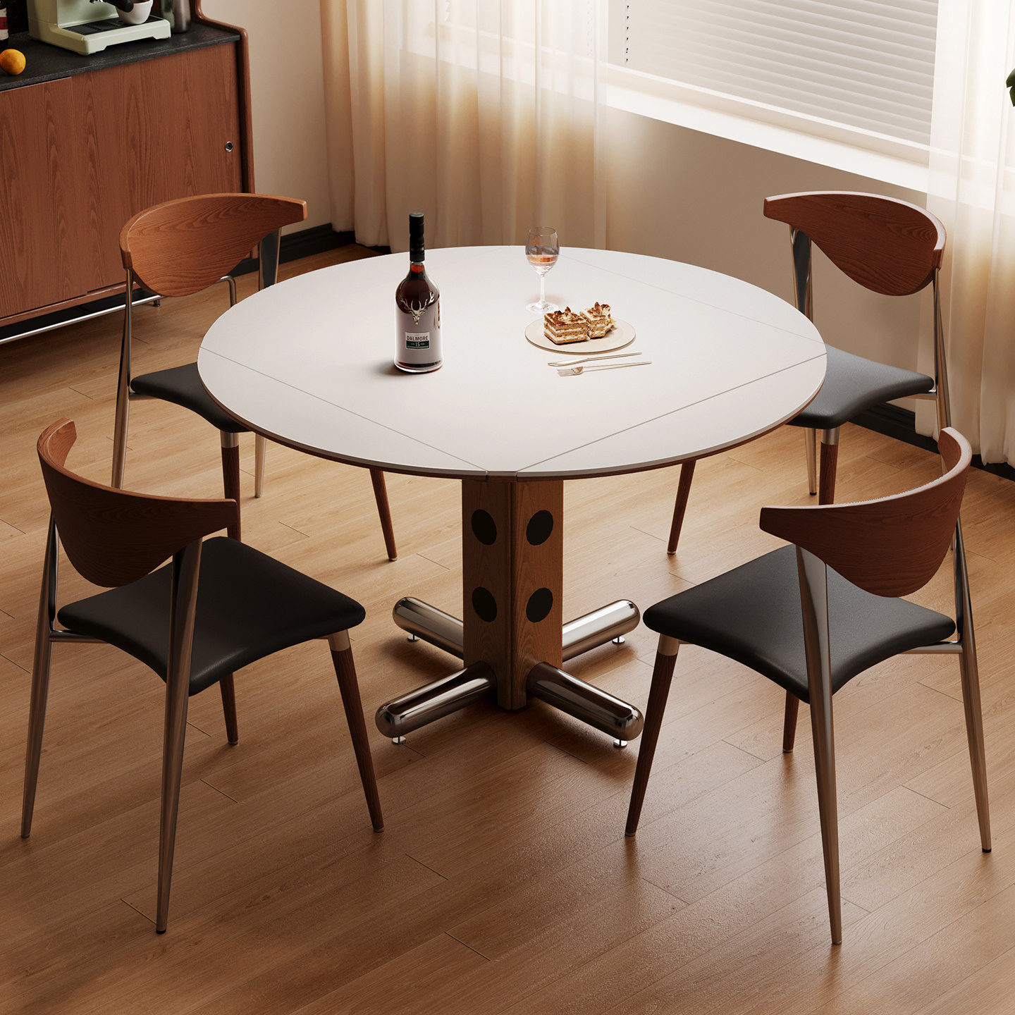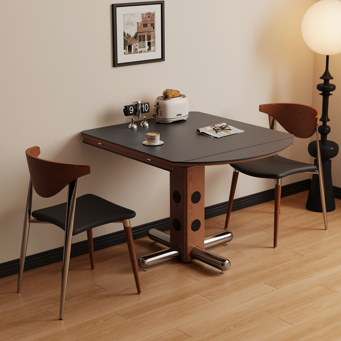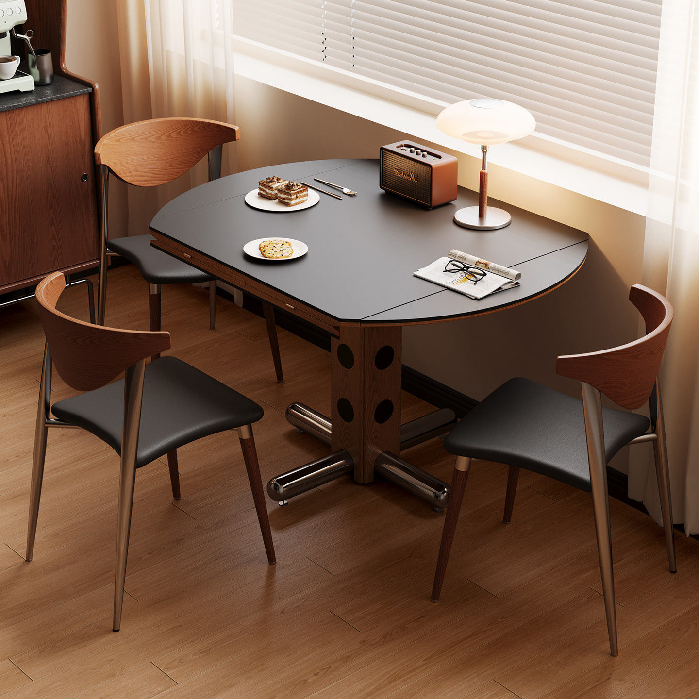 宫殿威仪包豪斯餐桌可方可圆餐桌复古风岩板餐桌可折叠方形餐桌