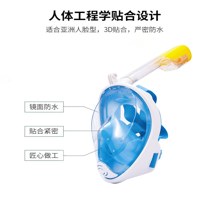 潜水面罩儿童成人浮潜面罩全脸全干式三宝呼吸器防雾游泳装备神器