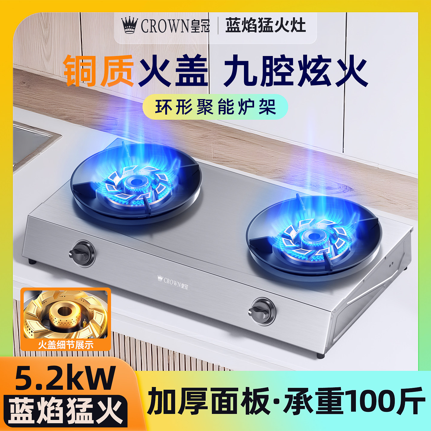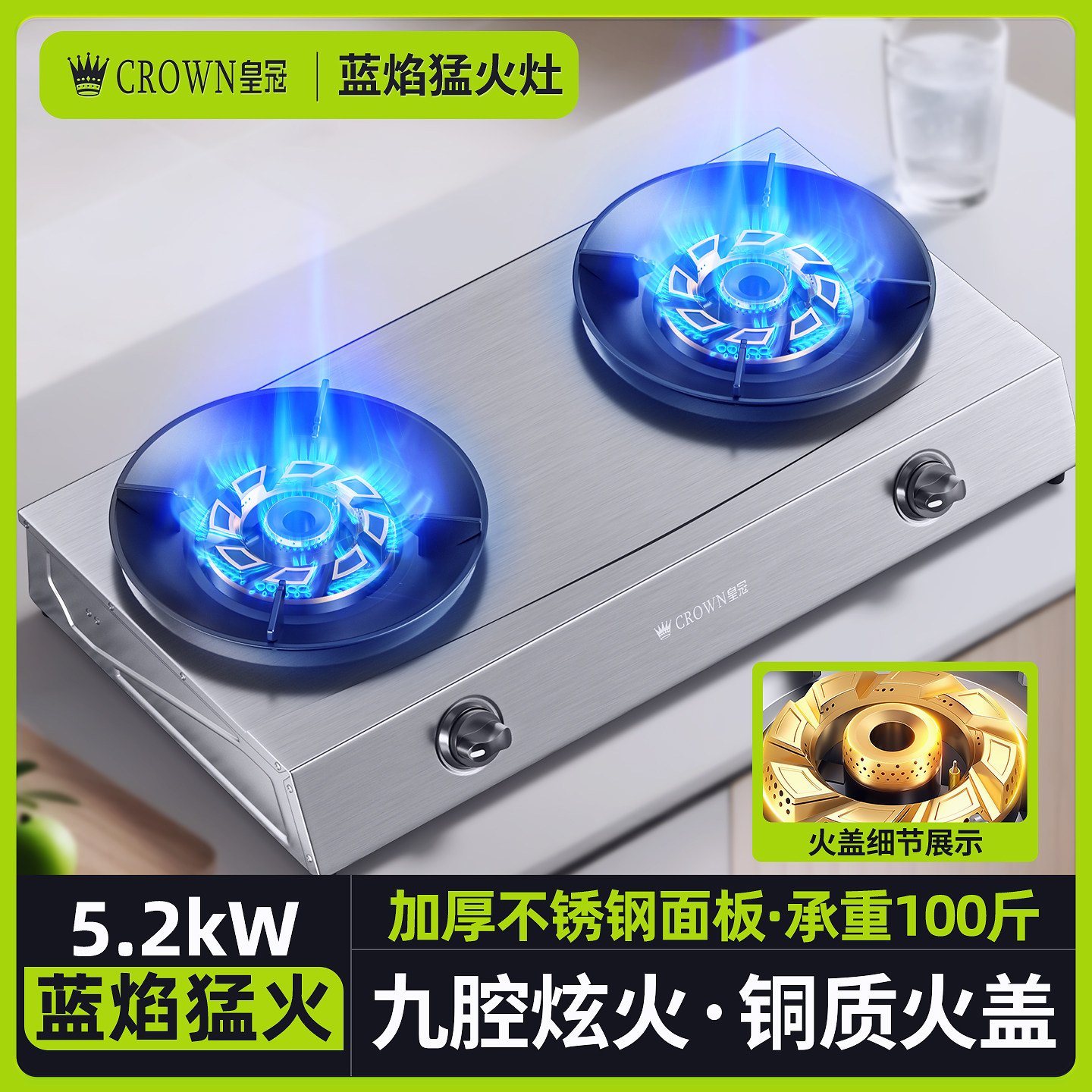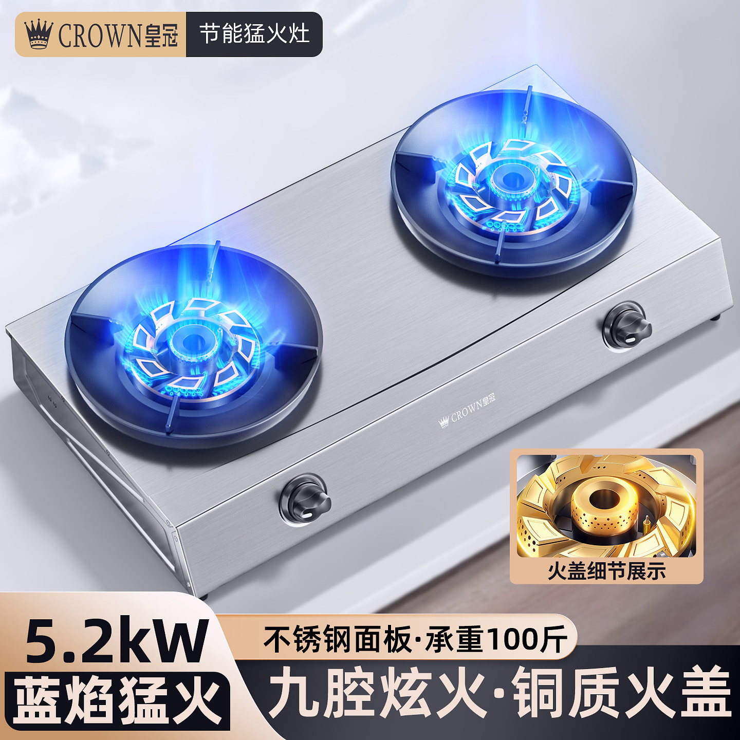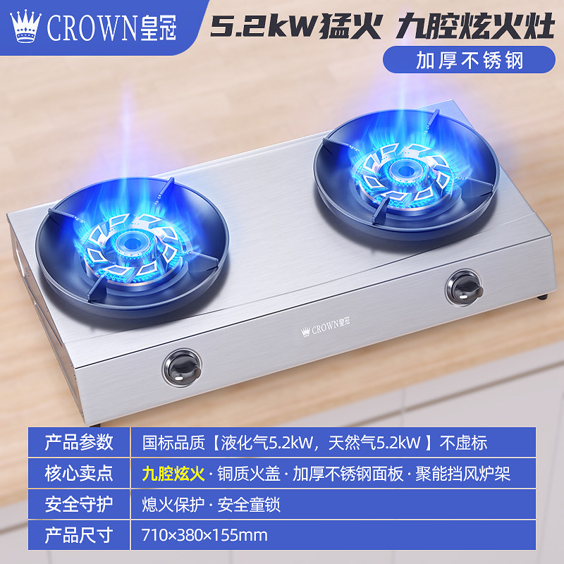 皇冠CROWN燃气灶煤气灶家用双灶天然气嵌入式台式液化气炉灶台XJ8