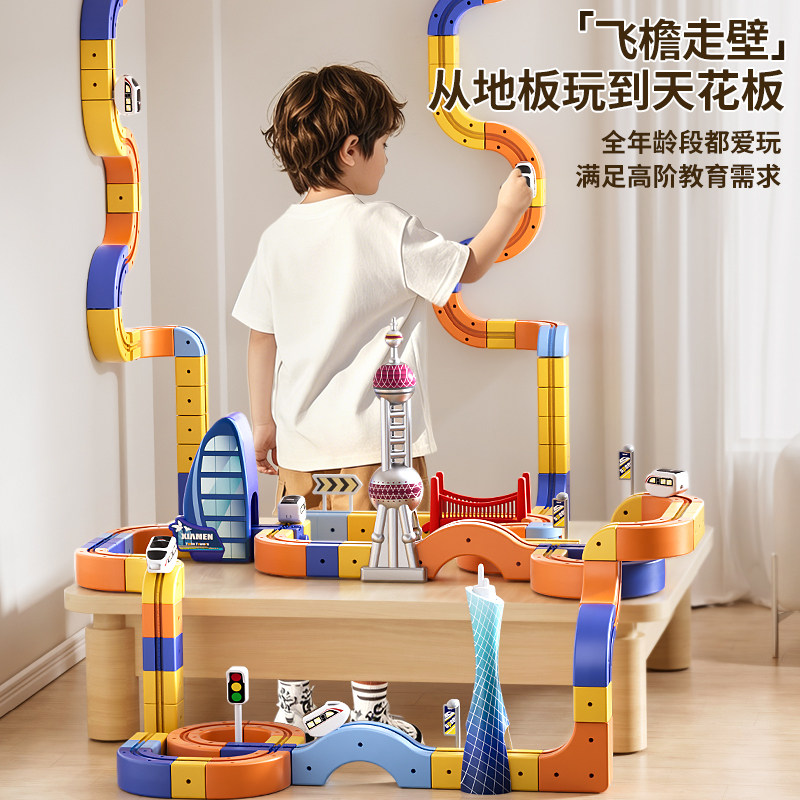 儿童会爬墙的玩具车反重力轨道车上墙男孩磁性回力惯性小汽车女孩