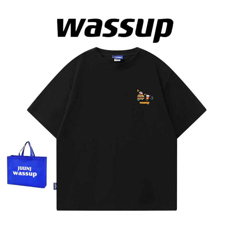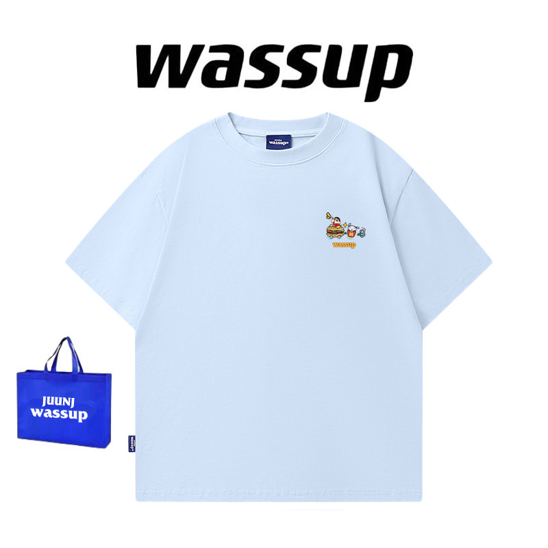 WASSUP圆领短袖男女日系卡通蜡笔小新印花纯棉T恤宽松情侣上衣潮