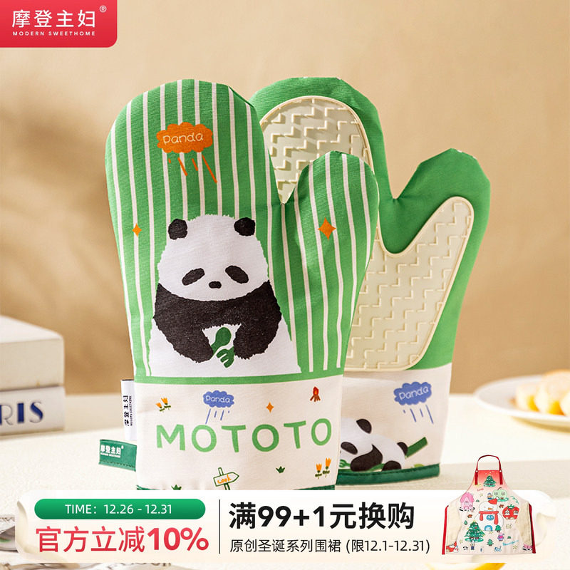 摩登主妇mototo熊猫隔热防烫手套厨房烘焙蒸烤箱微波炉耐高温专用