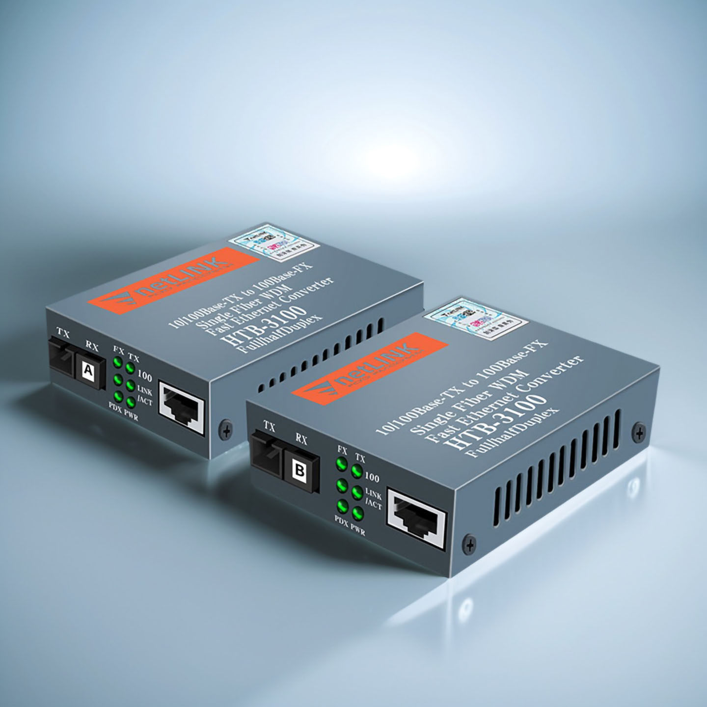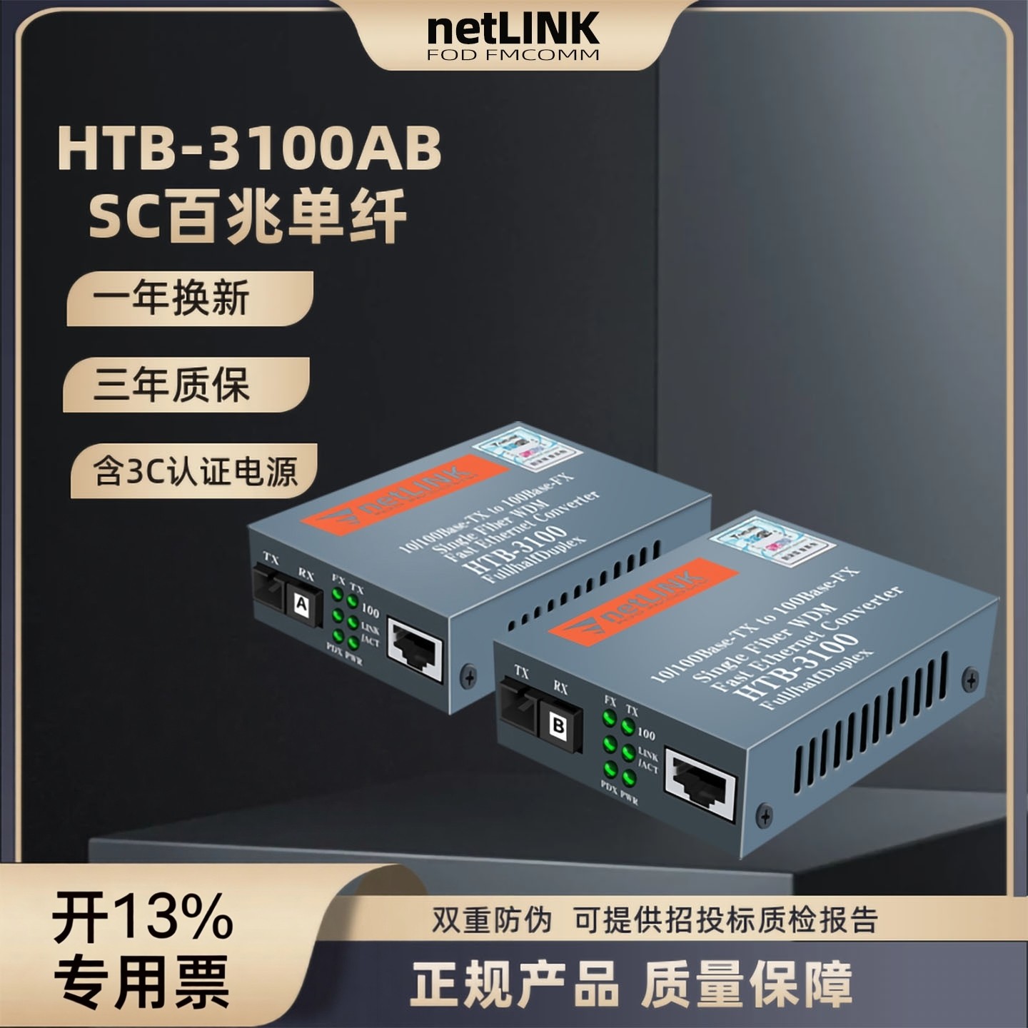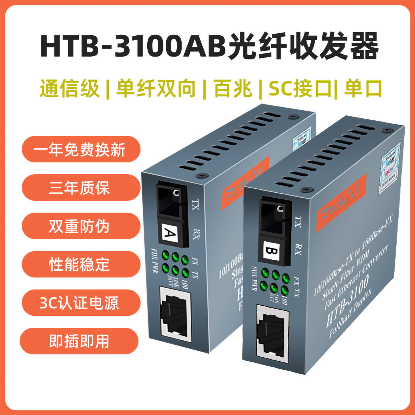 适用于netlink百兆光纤收发器HTB-3100AB-25km单纤单芯口单模光电转换器SC大方光纤转网线接口监控 Converter