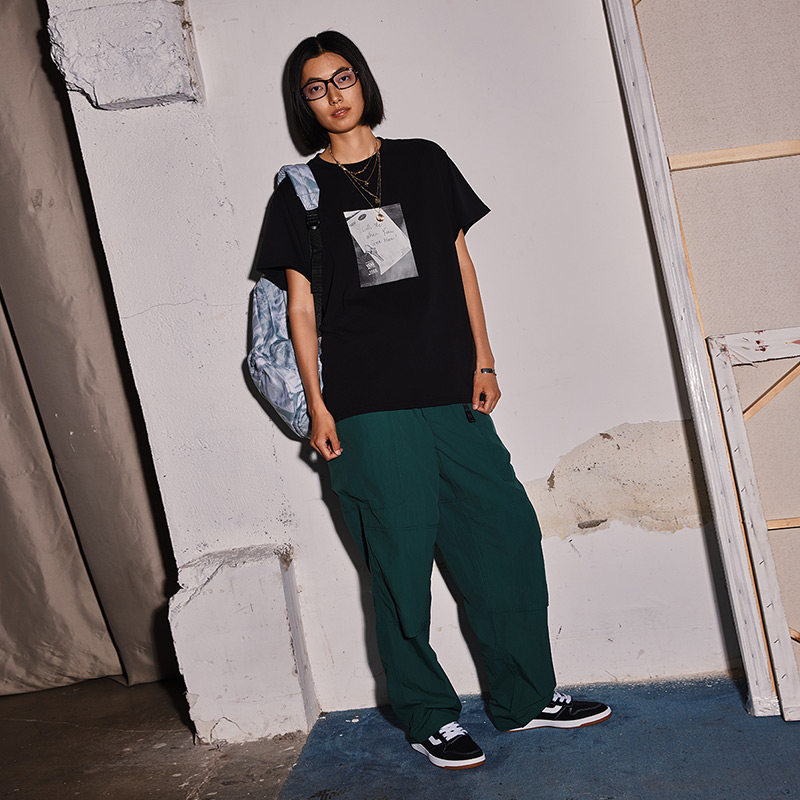 Vans范斯官方 女子纯棉黑色短袖T恤照片印花舒适圆领