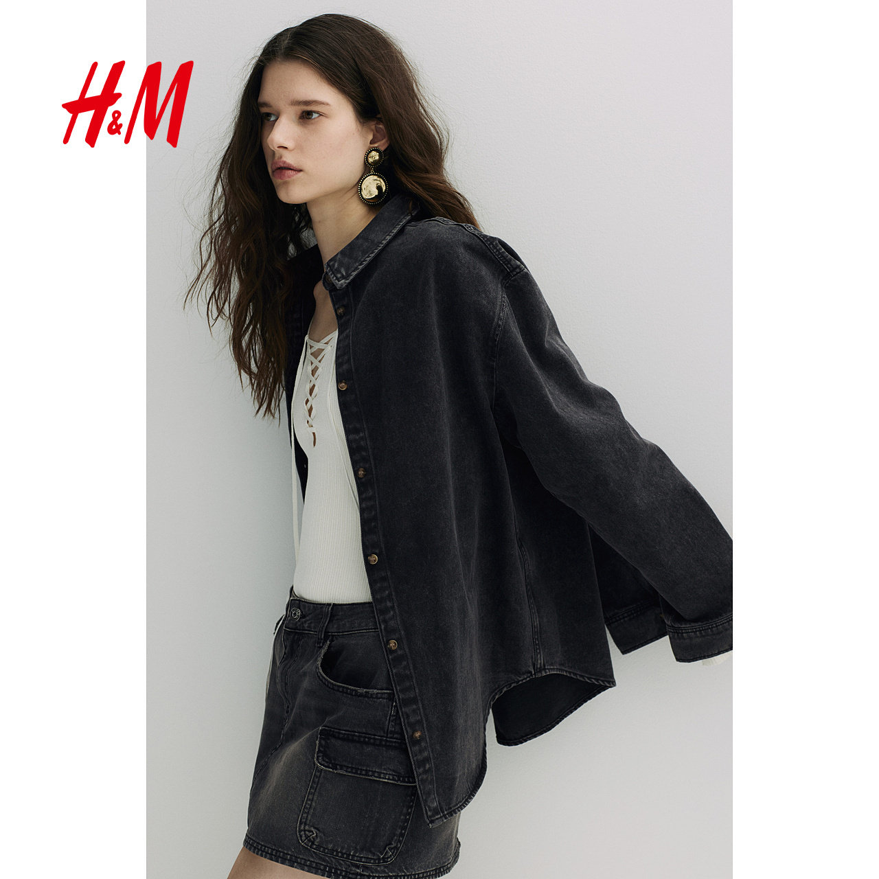 HM女装衬衫春夏高智感知识分子风长袖经典洗水牛仔衬衫1268199