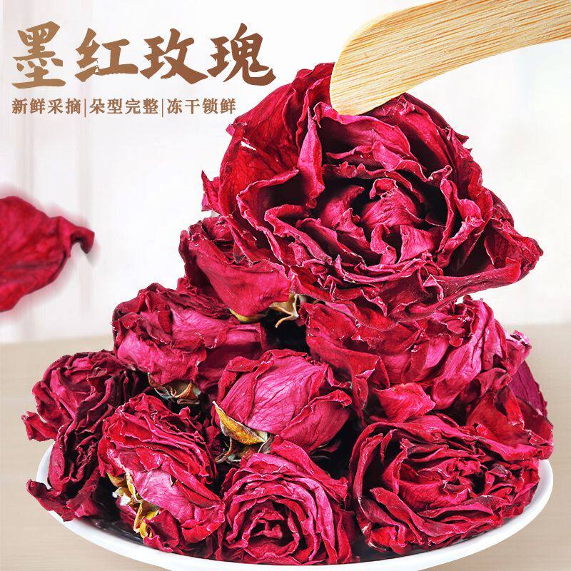 云南墨红玫瑰花茶官方旗舰店大朵冻干重瓣玫瑰花疏肝解郁养颜花瓣