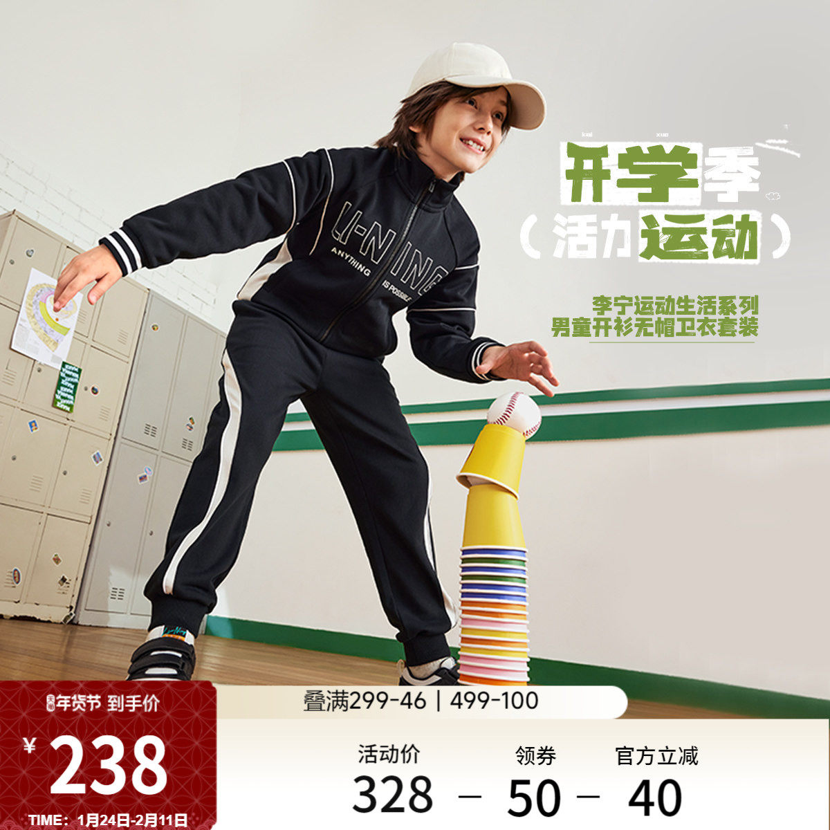 李宁童装套装男女小大童运动生活系列卫衣卫裤春季休闲针织童装