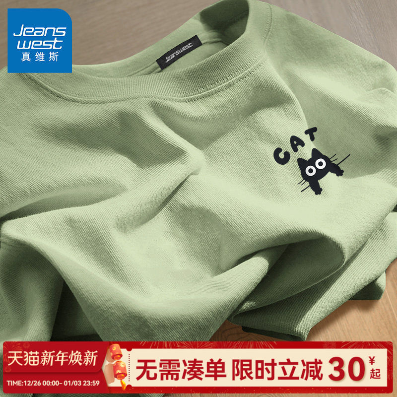 GV真维斯抹茶绿t恤男夏季重磅纯棉短袖男款休闲情侣装半袖上衣服C