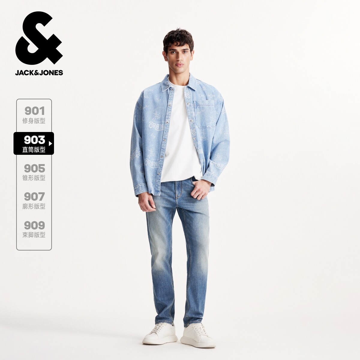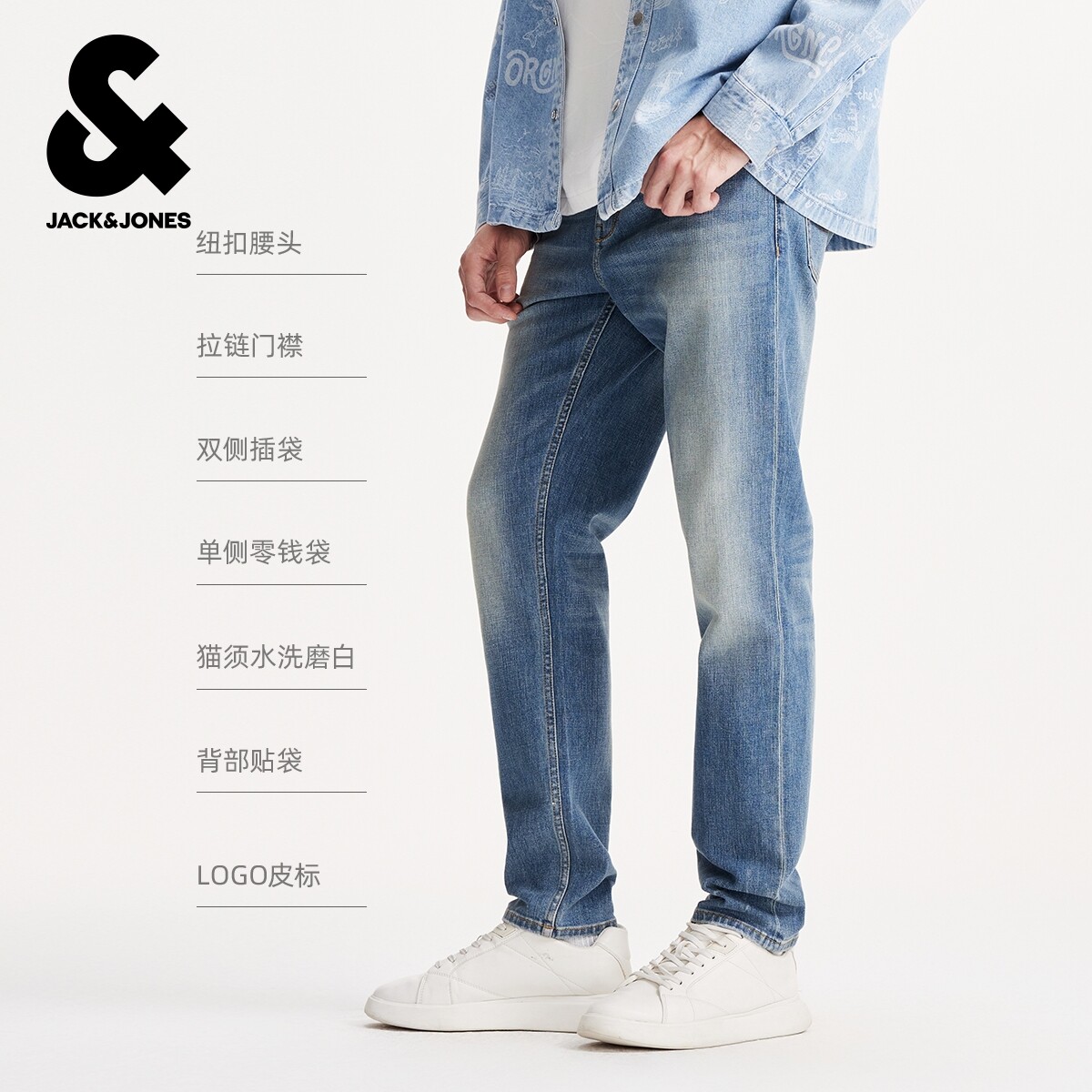 903杰克琼斯2026年春季潮流男装牛仔裤时尚长裤水洗猫须裤子男款