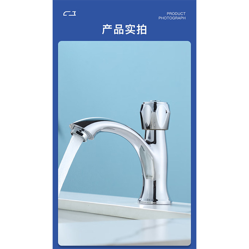 尊驰单冷面盆水龙头快开洗手池洗脸盆台盆家用浴室洗漱台水龙头