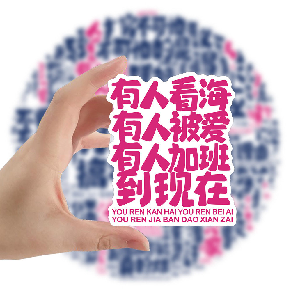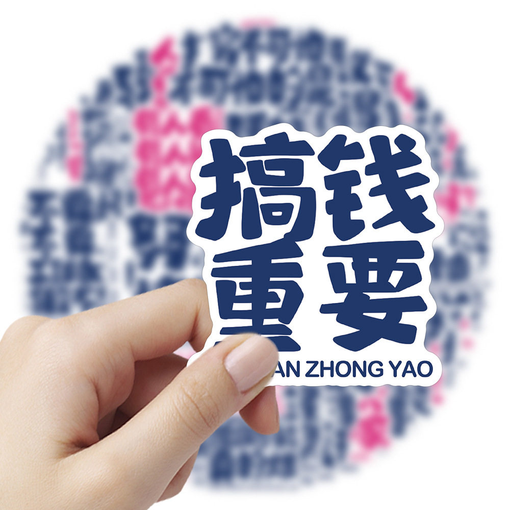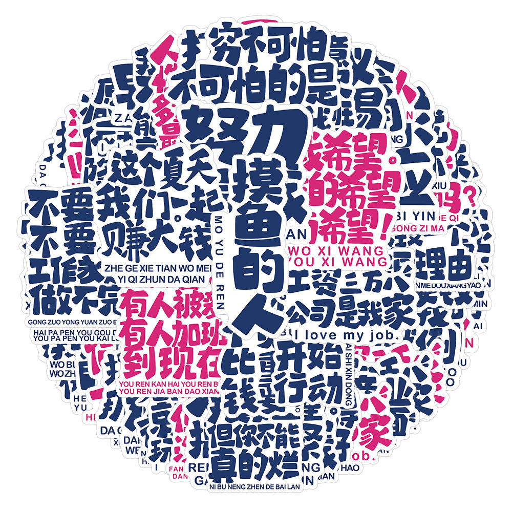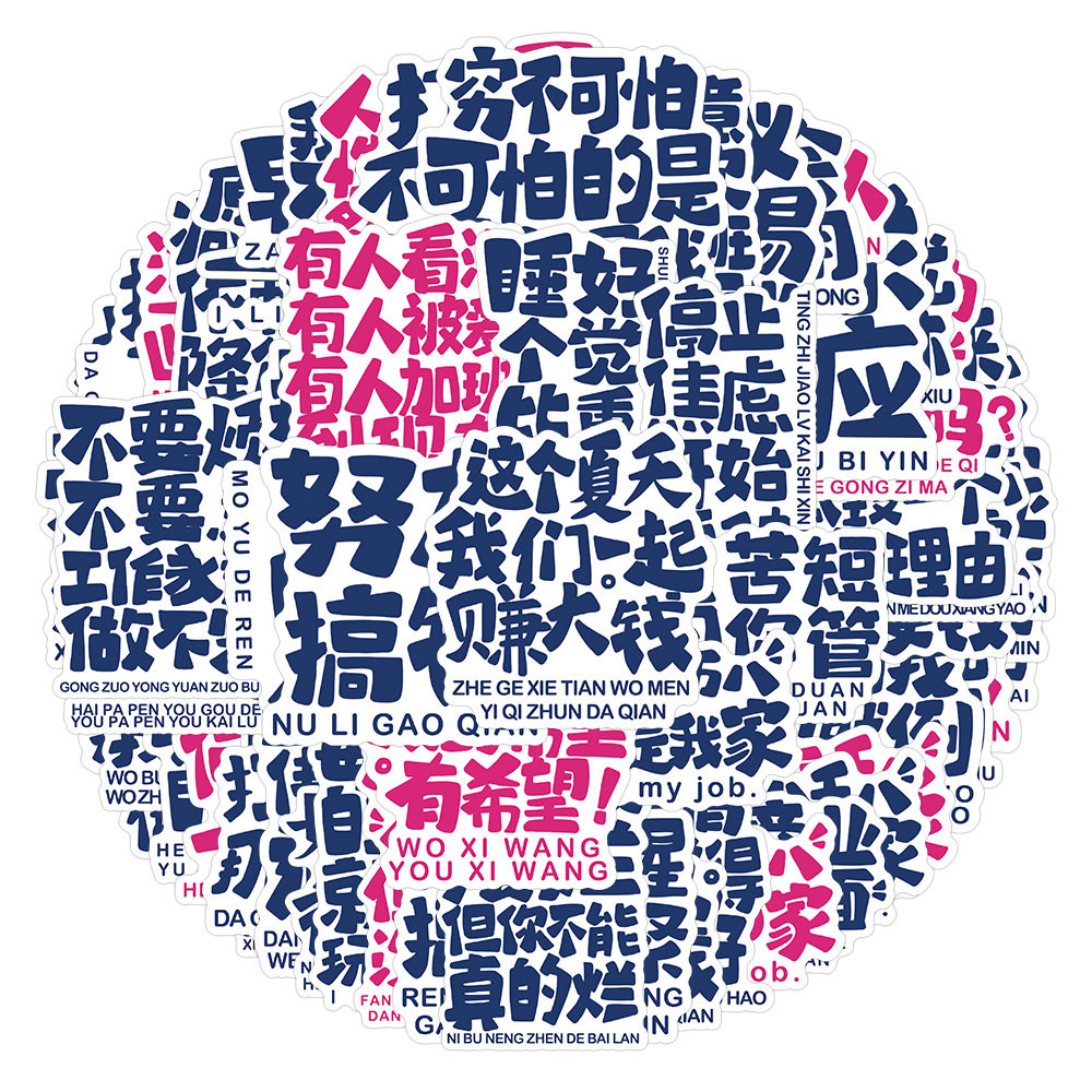 60张原创艺术字卡通手账贴纸装饰行李箱滑板车手机壳儿童贴画