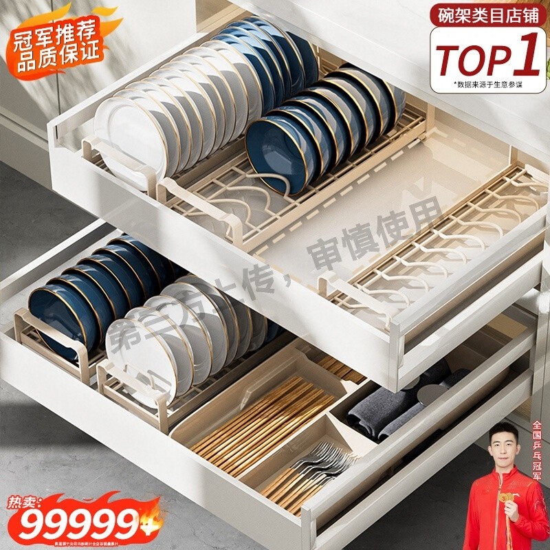 不锈钢碗碟收纳架厨房置物架抽屉内置放盘子沥水碗架分隔拉篮餐具
