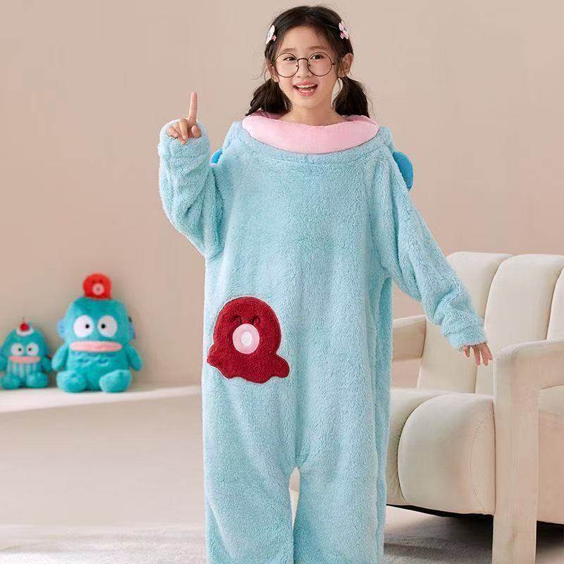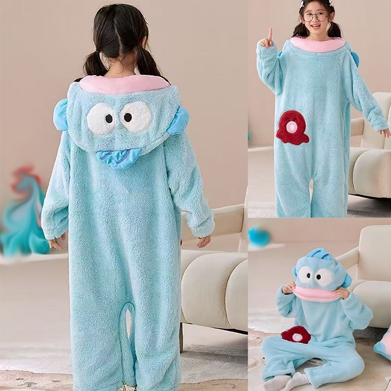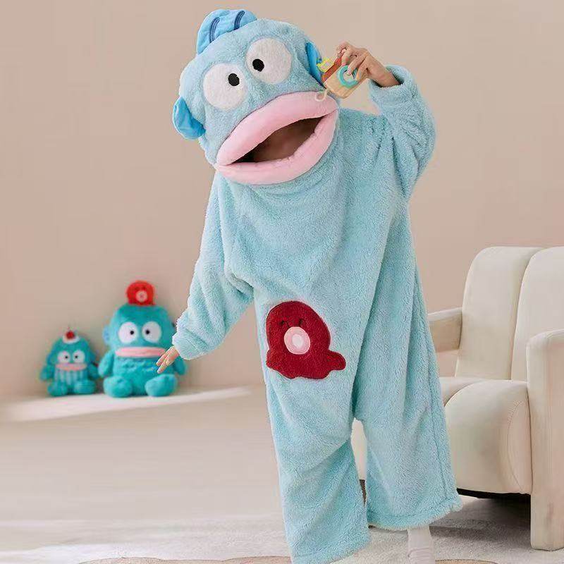 秋冬季加厚珊瑚绒丑鱼儿童可爱搞怪连体睡衣男女童卡通亲子家居服