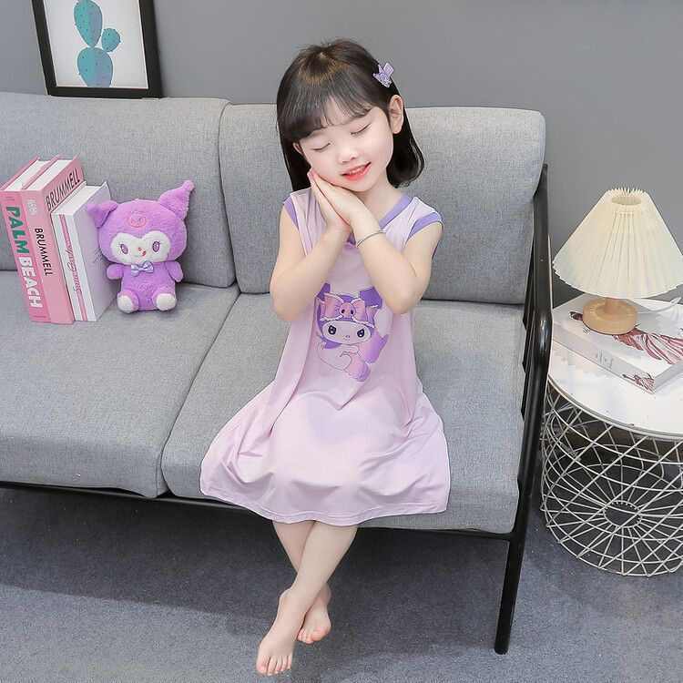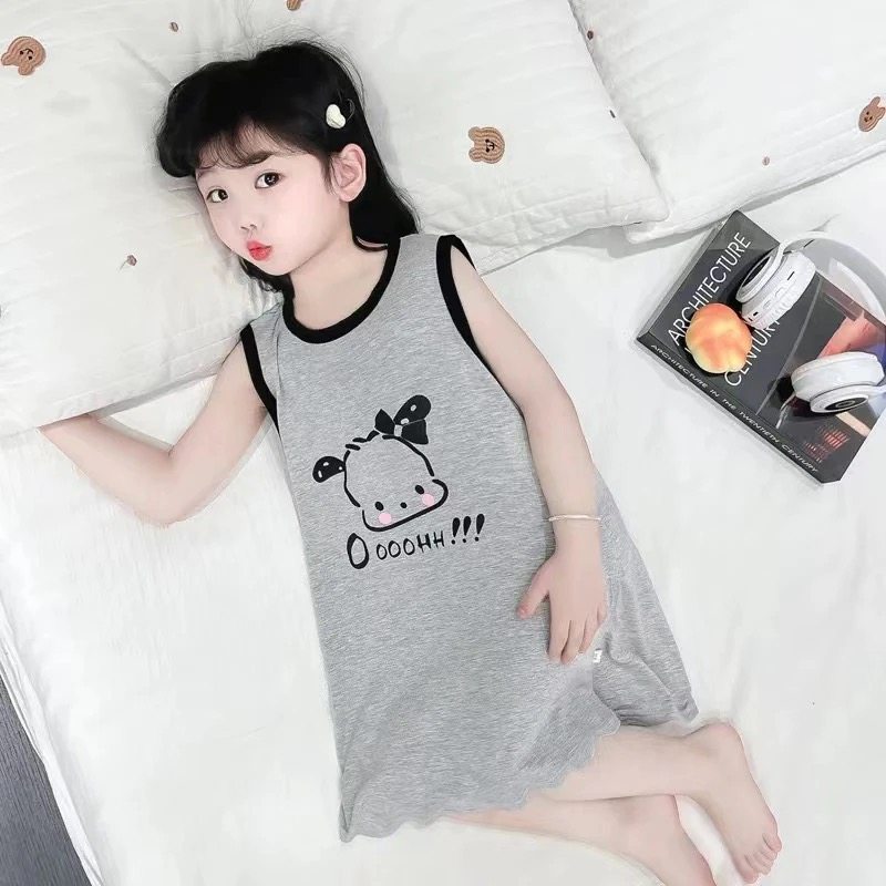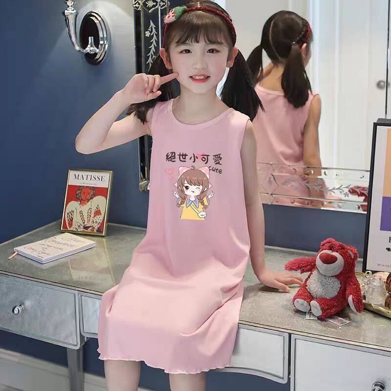2025新款女孩冰丝莫代尔女童夏季背心裙卡通睡衣裙母女亲子家居服