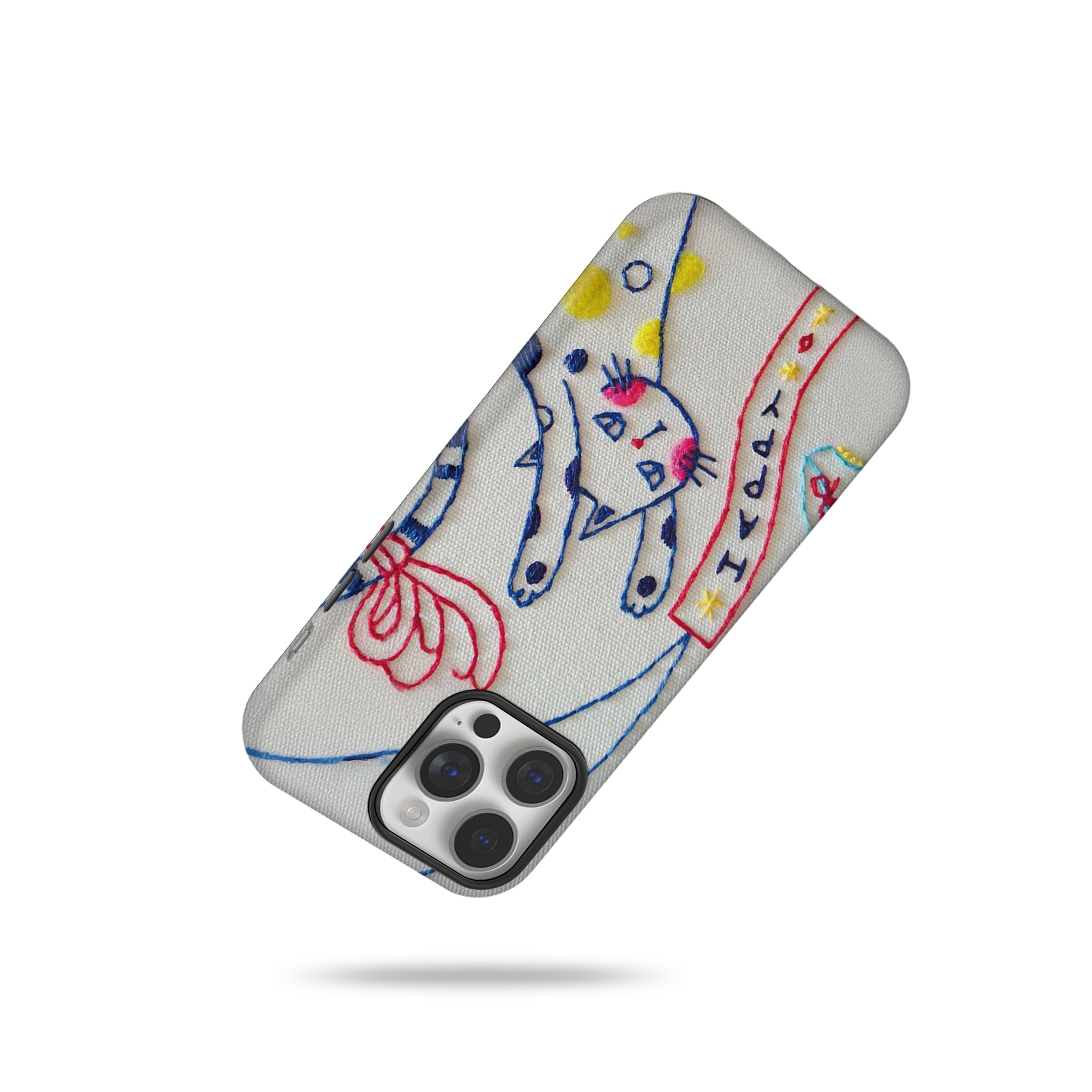 可爱快乐线条小猫适用苹果17promax手机壳磁吸iPhone16新款趣味15小众独特14稀奇古怪13高级华为小米15手机壳