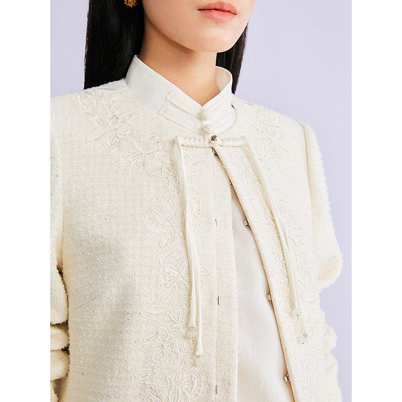 【新中式】YINER音儿2026春季新款优雅珠片纱刺绣盘扣一手长外套