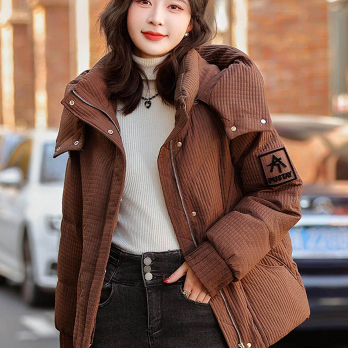 圣诞礼物骆驼熊猫泡泡户外羽绒服女冬短款保暖好看面包服奶茶棕男