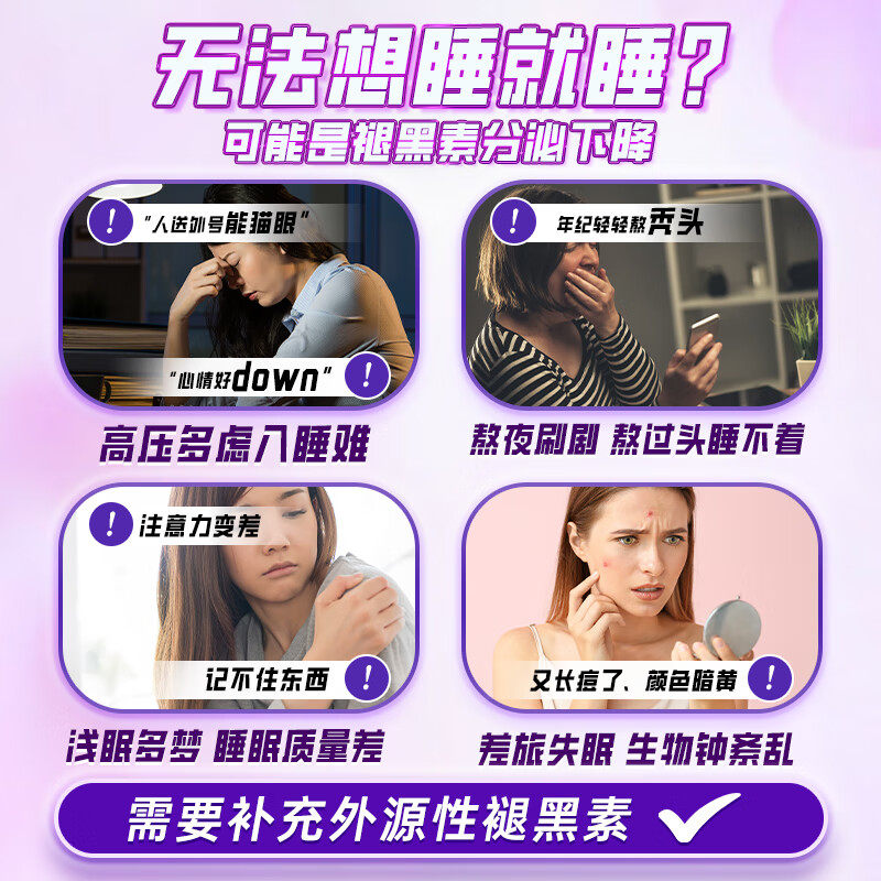 褪黑素维生素b6片大学生中老年睡不着助改善睡眠安瓶非退黑素软糖