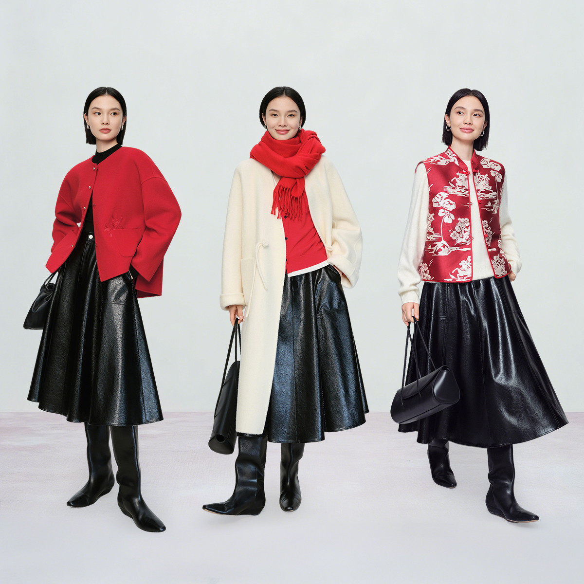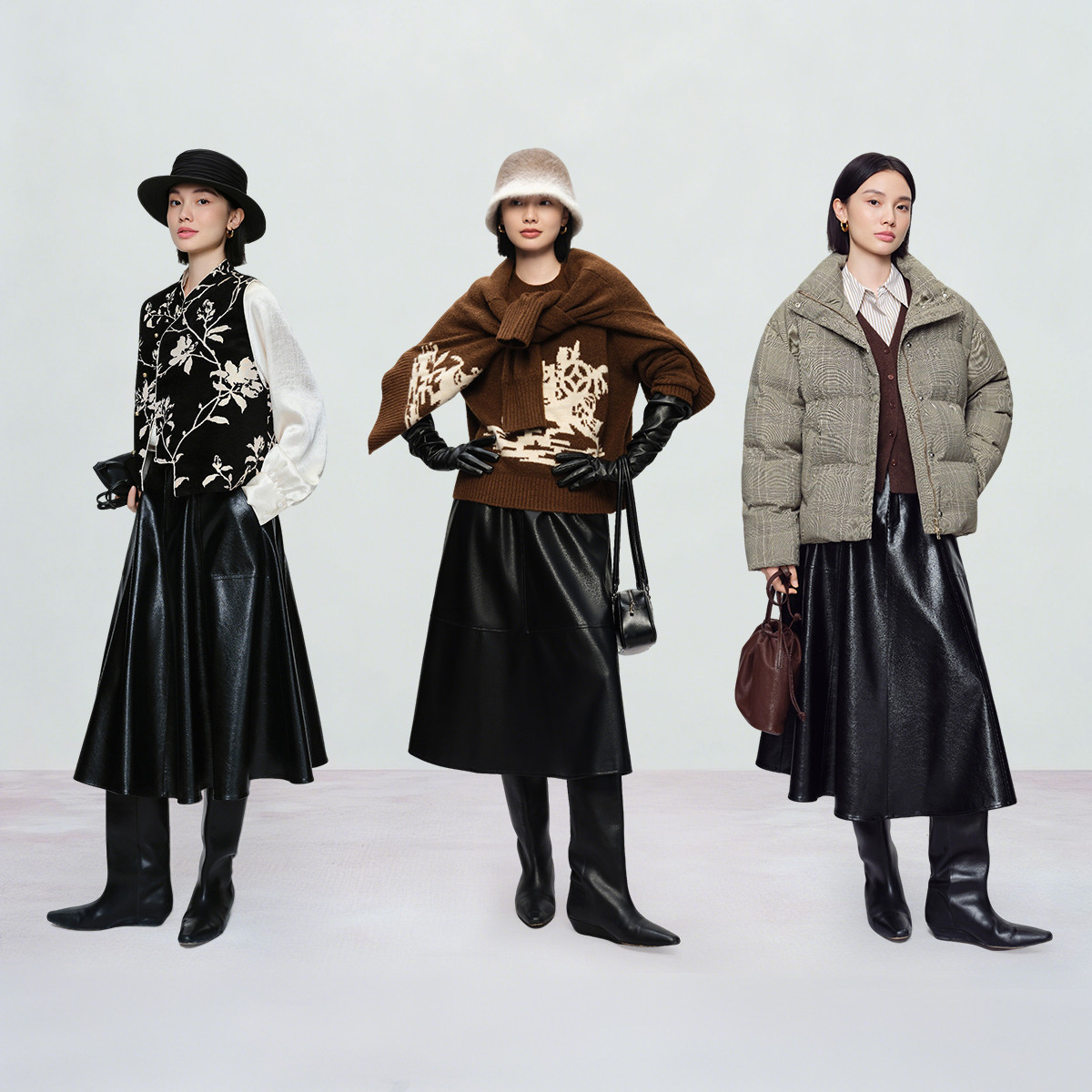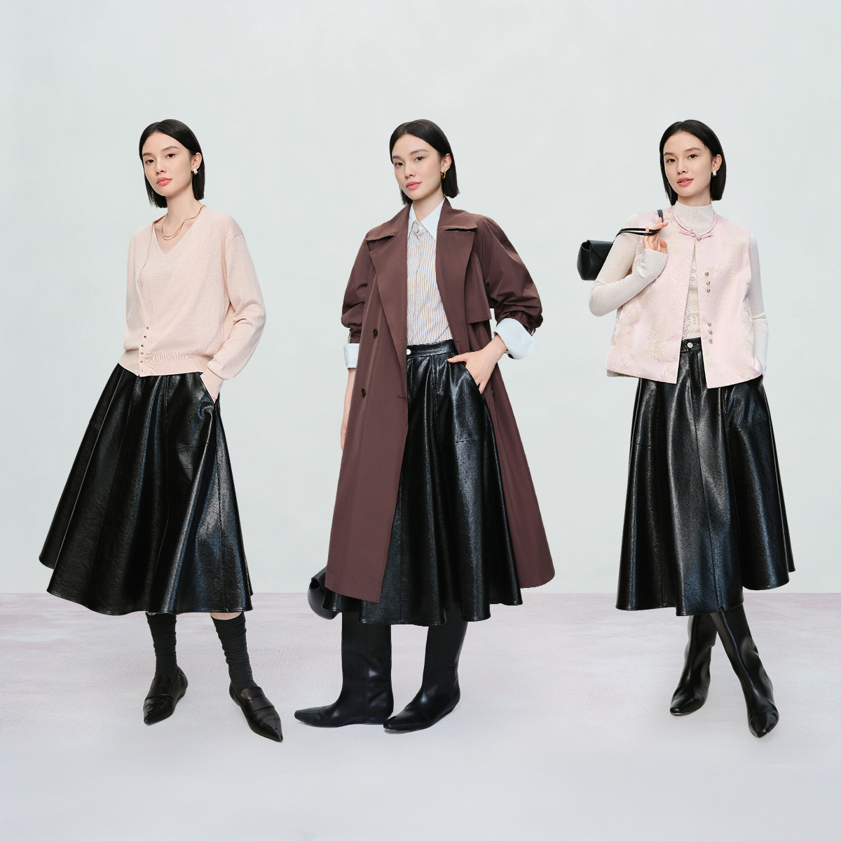 naivee纳薇复古高腰a字皮裙2025新款秋冬中长款梨形伞裙半身裙
