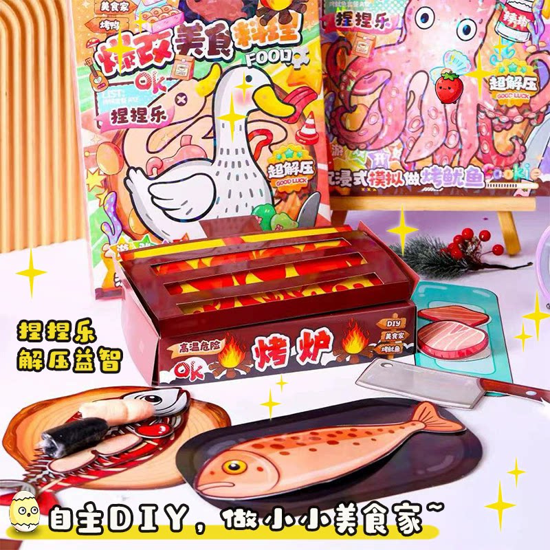 烤鱿鱼爆改美食料理解压捏捏乐DIY美食家汉堡包沉浸式拼装小玩具