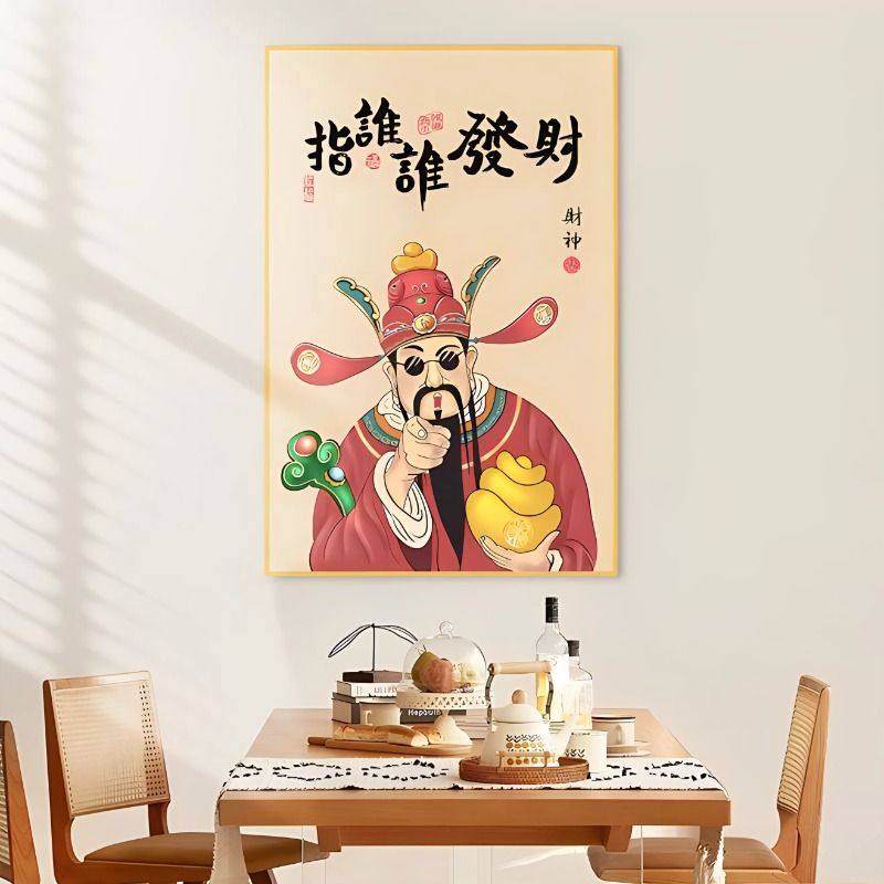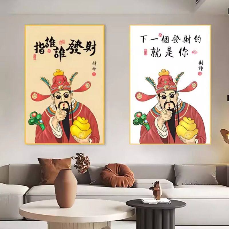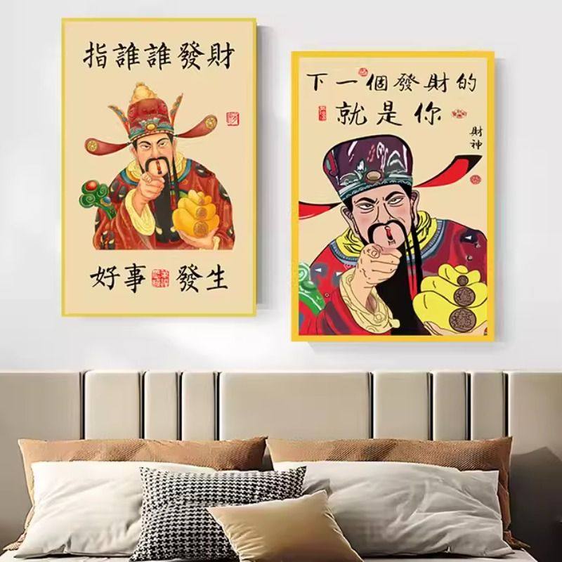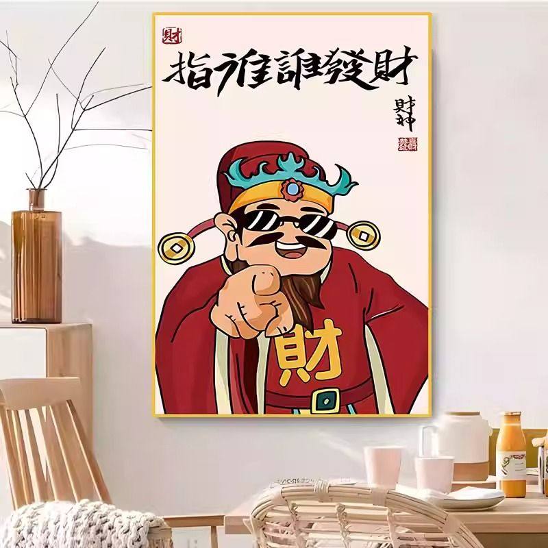 新中式财神装饰画墙贴画卧室客厅背景墙壁画指谁谁发财餐厅玄关画
