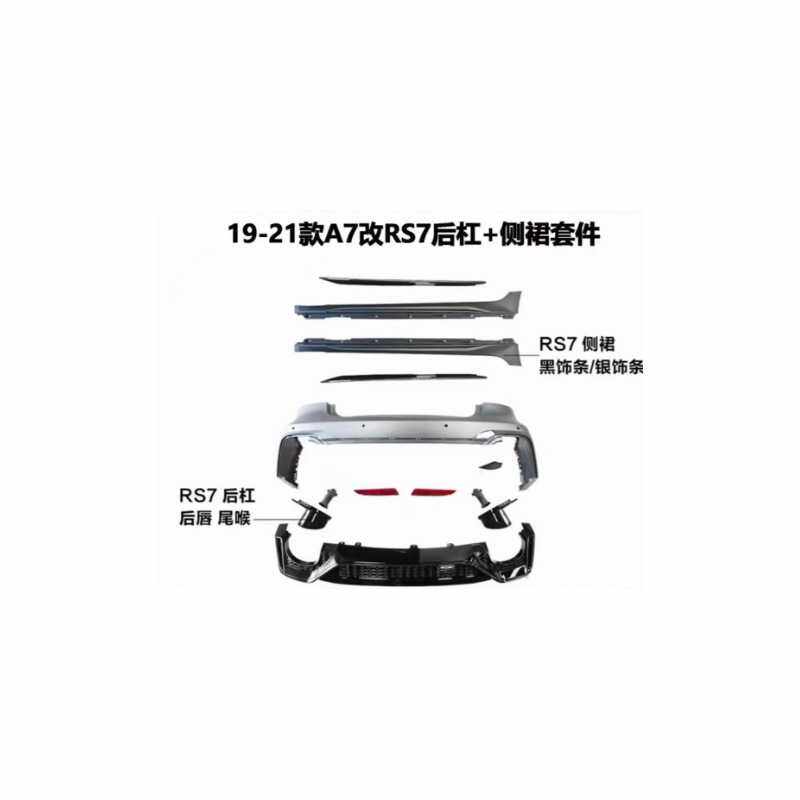 19-21款A7改RS7后杠+侧裙套件RS7 后杠后唇 尾喉RS7 侧裙黑饰条