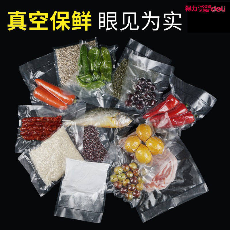 得力网纹路真空食品包装袋密封保鲜袋多规格熟食包装封口塑料袋抽气封口机家用压缩塑封袋子双面纹路真空袋