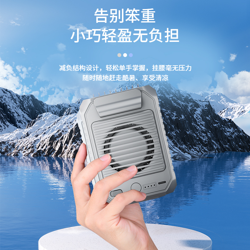 挂腰风扇随身便携式夹腰间强力电风扇小型工地小风扇高温作业usb充电户外卖员制冷空调2024新款大风力可挂脖f