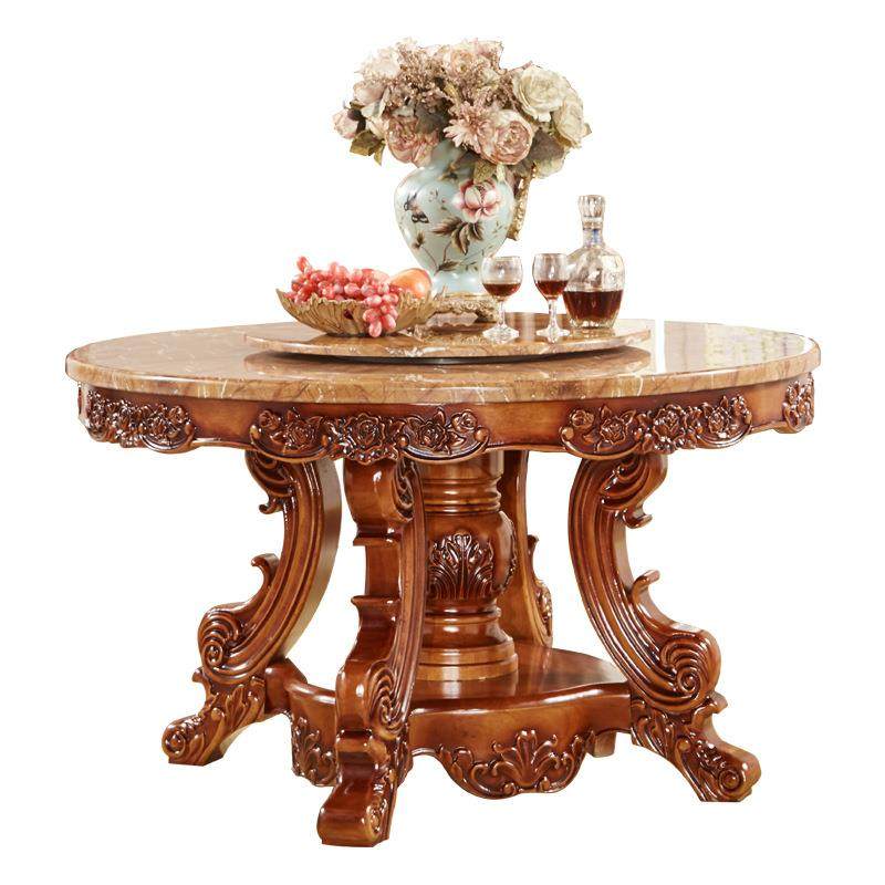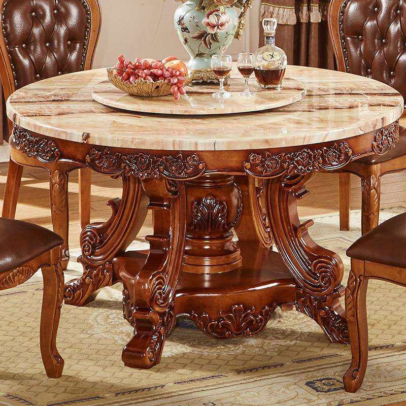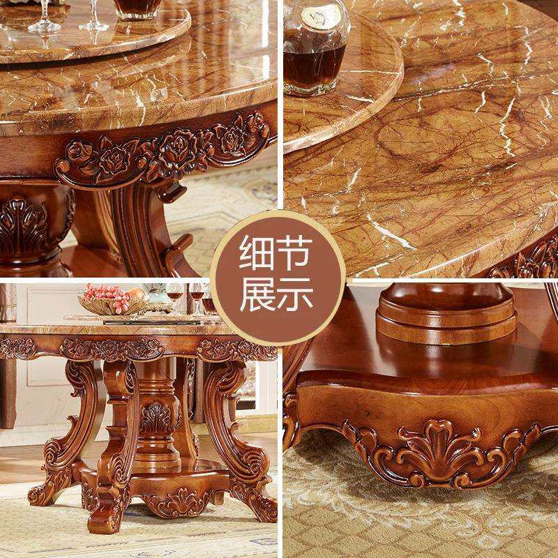 欧式餐桌椅组合大理石圆桌带转盘美式实木雕花家用小户型6人饭桌