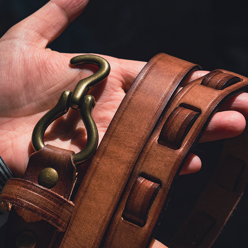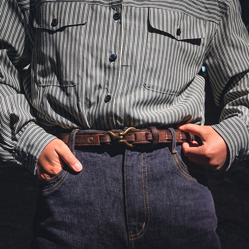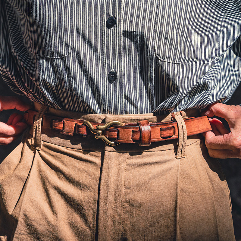 美式复古女实心黄铜钩小众男休闲真皮带2.5厘米加宽头层牛皮腰带